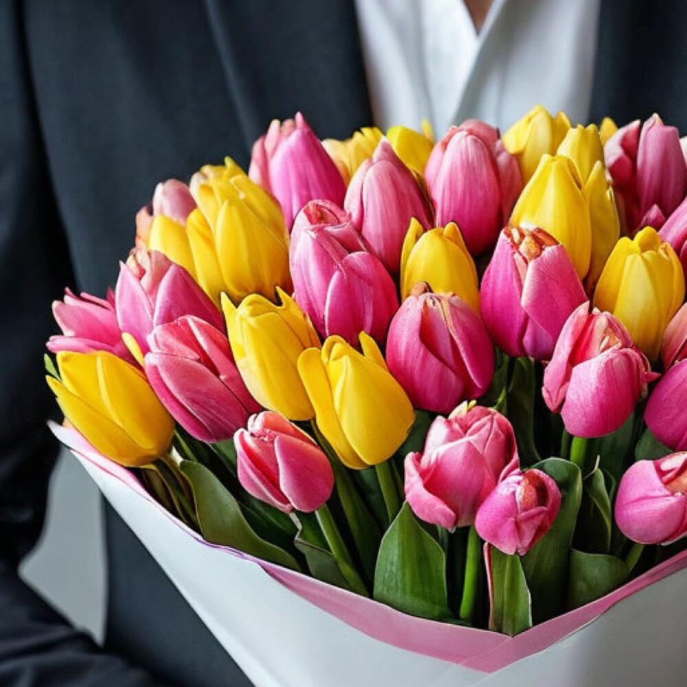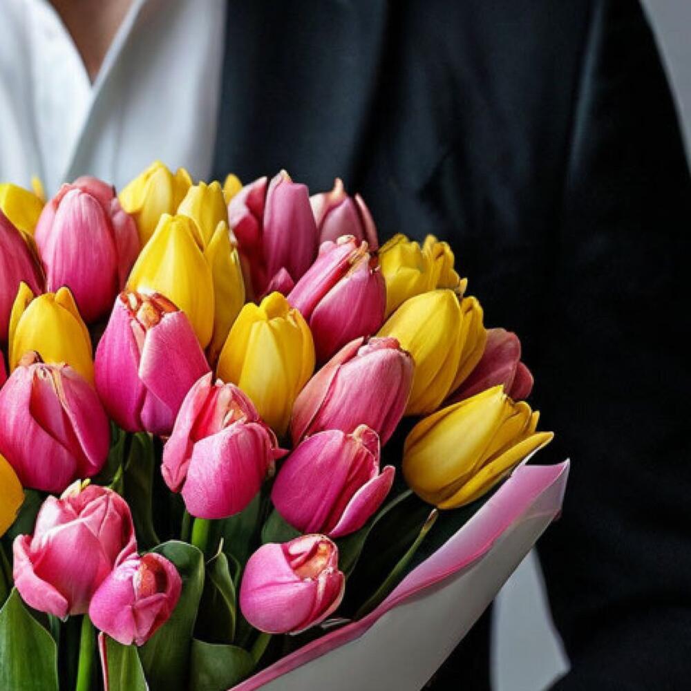 Эксклюзивный букет из 51 желто-розового тюльпана — символ щедрости, нежности и восхищения.