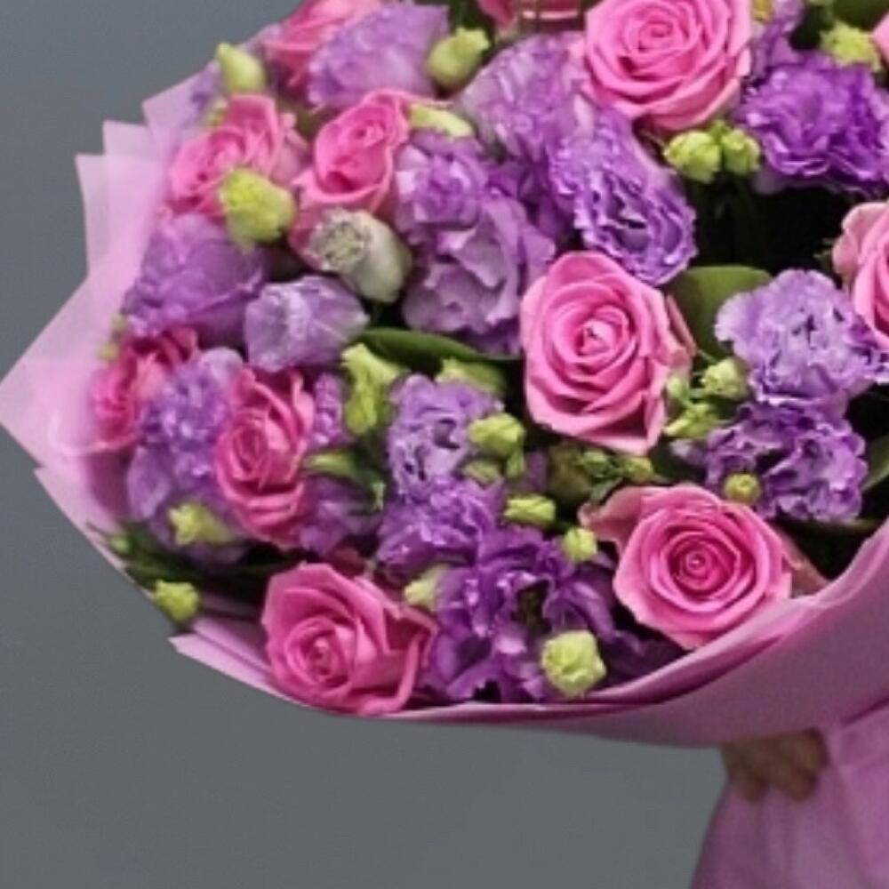 - Этот волшебный букет «Барби» привлекает внимание своей нежностью и изысканностью. Он состоит из 15 розовых роз, символизирующих любовь и нежность, а также нежно фиолетовой эустомы, добавляющей нотку загадочности и таинственности.