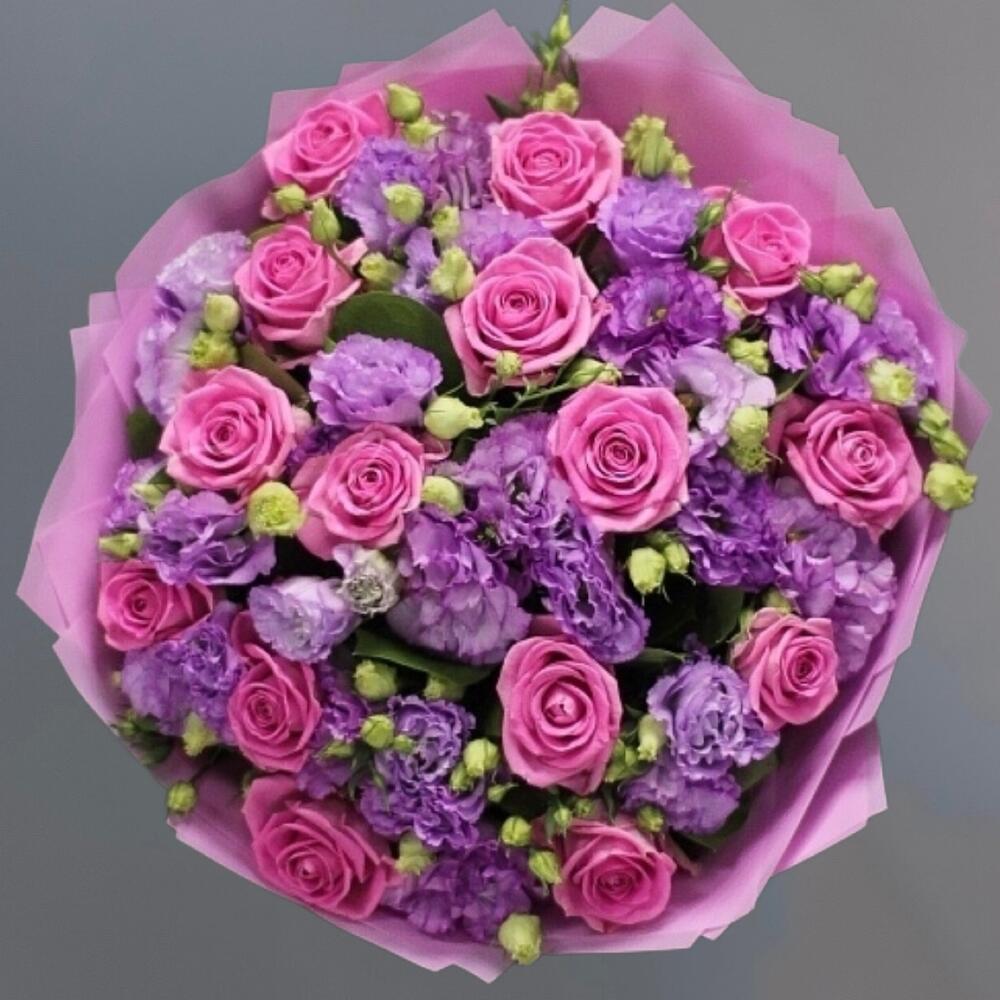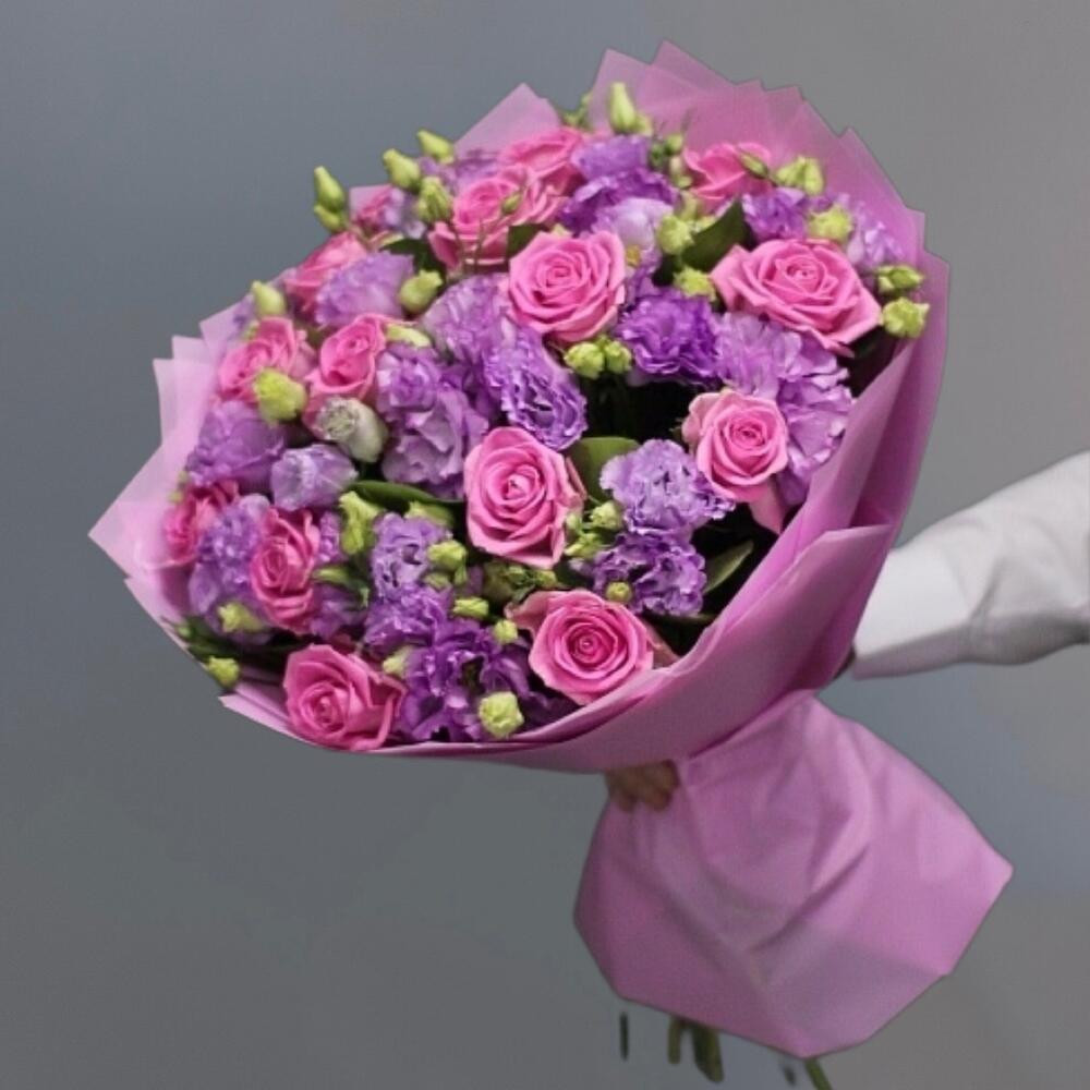 - Бархатистые лепестки роз и эустомы наполняют воздух своим нежным ароматом, создавая атмосферу романтики и чувственности.