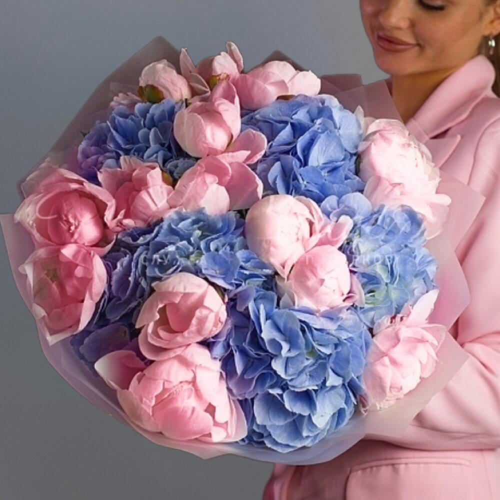 - Этот волшебный букет из 5 голубых гортензий и 15 розовых пионов привлекает своей изысканностью и нежностью. Голубые гортензии символизируют искренность и гармонию, а розовые пионы раскрываются с невероятной красотой, создавая уникальное сочетание оттенков. Но это еще не все! Чтобы сделать этот букет еще более особенным, он упакован в нежную упаковку, подчеркивающую его элегантность и изысканность. Каждый цветок в этом букете является произведением искусства, которое приносит радость и восхищение.