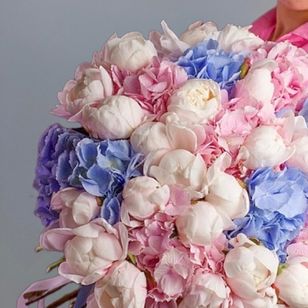 - Этот великолепный букет из гортензий, розовых синих и пионов олицетворяет нежность, элегантность и изысканность. Каждый цветок в этом наборе раскрывается с яркостью и красотой, создавая уникальное сочетание оттенков розового и синего, которое невозможно не заметить. Гортензии с их пышными соцветиями наполняют воздух своим неповторимым ароматом, создавая атмосферу магии и романтики.