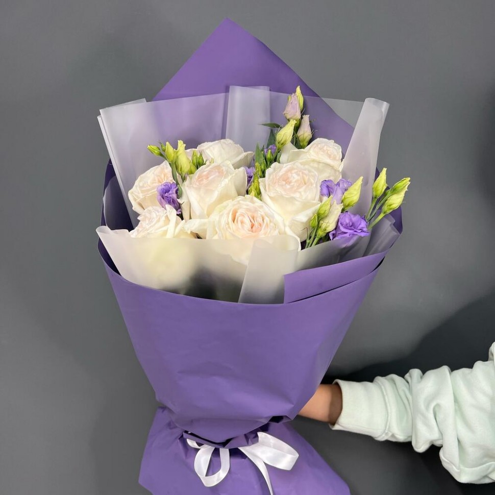 - Этот нежный и романтичный букет настоящее произведение искусства. В нем сочетаются прекрасные розы Дэвида Остина пионовидной формы и элегантная фиолетовая эустома, создавая удивительную гармонию цветов и текстур. Матовая фиолетовая упаковка и матовая прозрачная лента придают этому букету особую изысканность и шик. Каждый цветок в этом букете словно создан, чтобы выразить нежность и любовь. Этот букет наполнит комнату неповторимым ароматом свежих цветов, создавая атмосферу тепла и уюта. Он станет идеальным подарком для любого случая, будь то день рождения, юбилей или просто знак внимания к близкому человеку. Этот букет не только порадует глаза своей красотой, но и наполнит сердце теплом и любовью. Выбирая этот букет, вы подарите не только цветы, но и незабываемые эмоции и воспоминания на всю жизнь