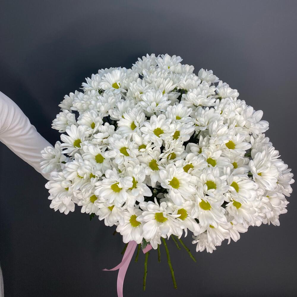 - Белые хризантем символизируют любовь и нежность, белые — чистоту и невинность. Этот букет подарит радость и улыбку вашей любимой девушке или близкому человеку в любой день.