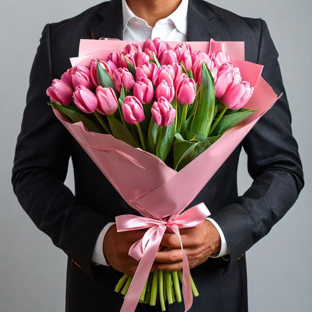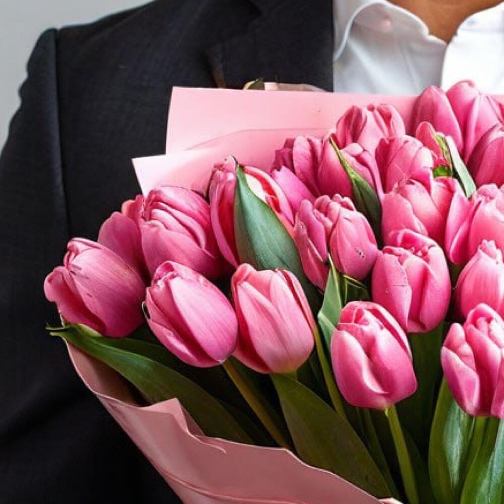 - Каждый тюльпан в этом букете является символом нежности и заботы, что делает его прекрасным подарком для особых моментов в жизни.25 розовых тюльпанов в серой упаковке подойдут как для дня рождения, так и для романтического свидания, или просто чтобы порадовать близкого человека.