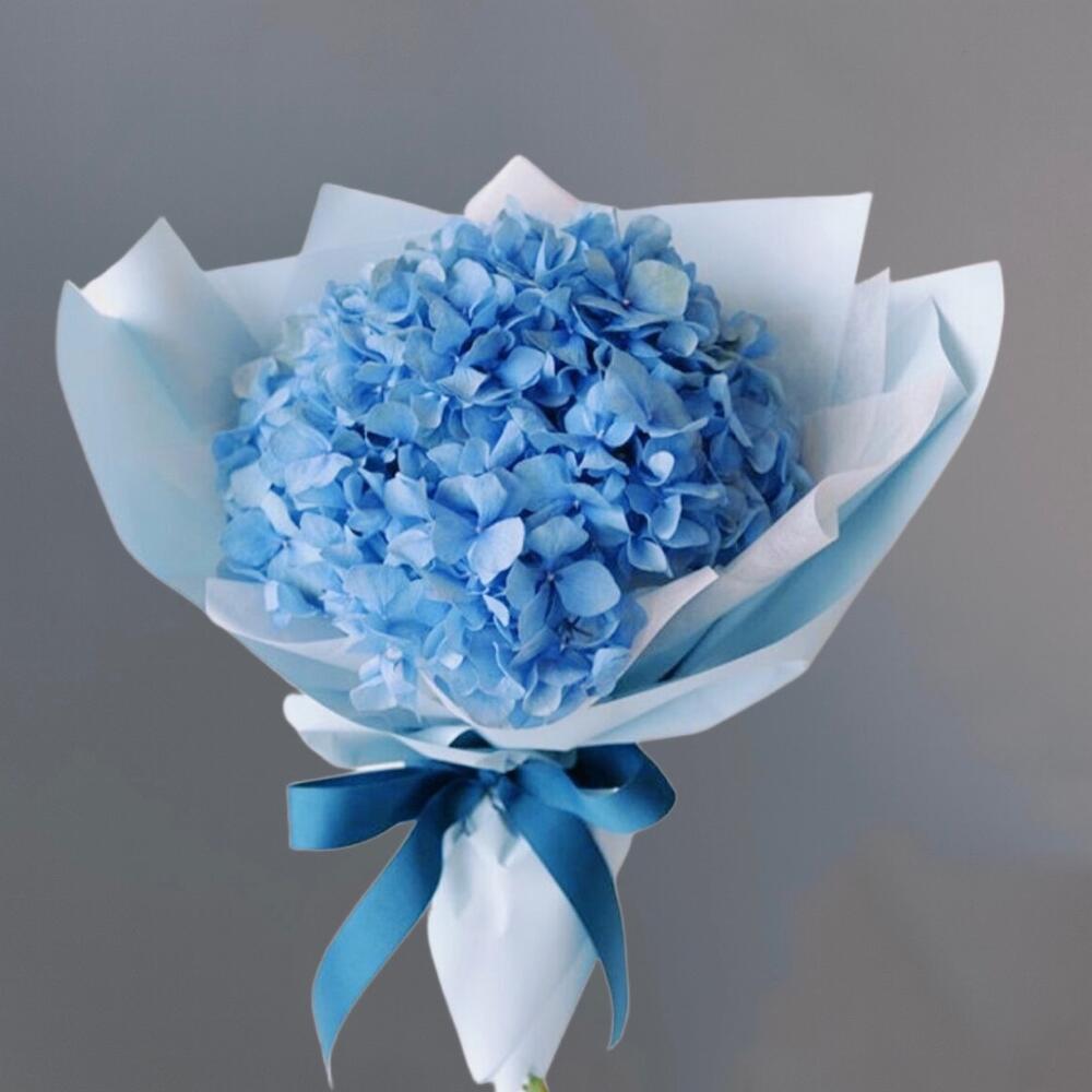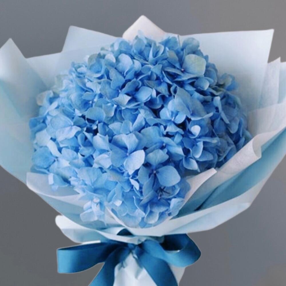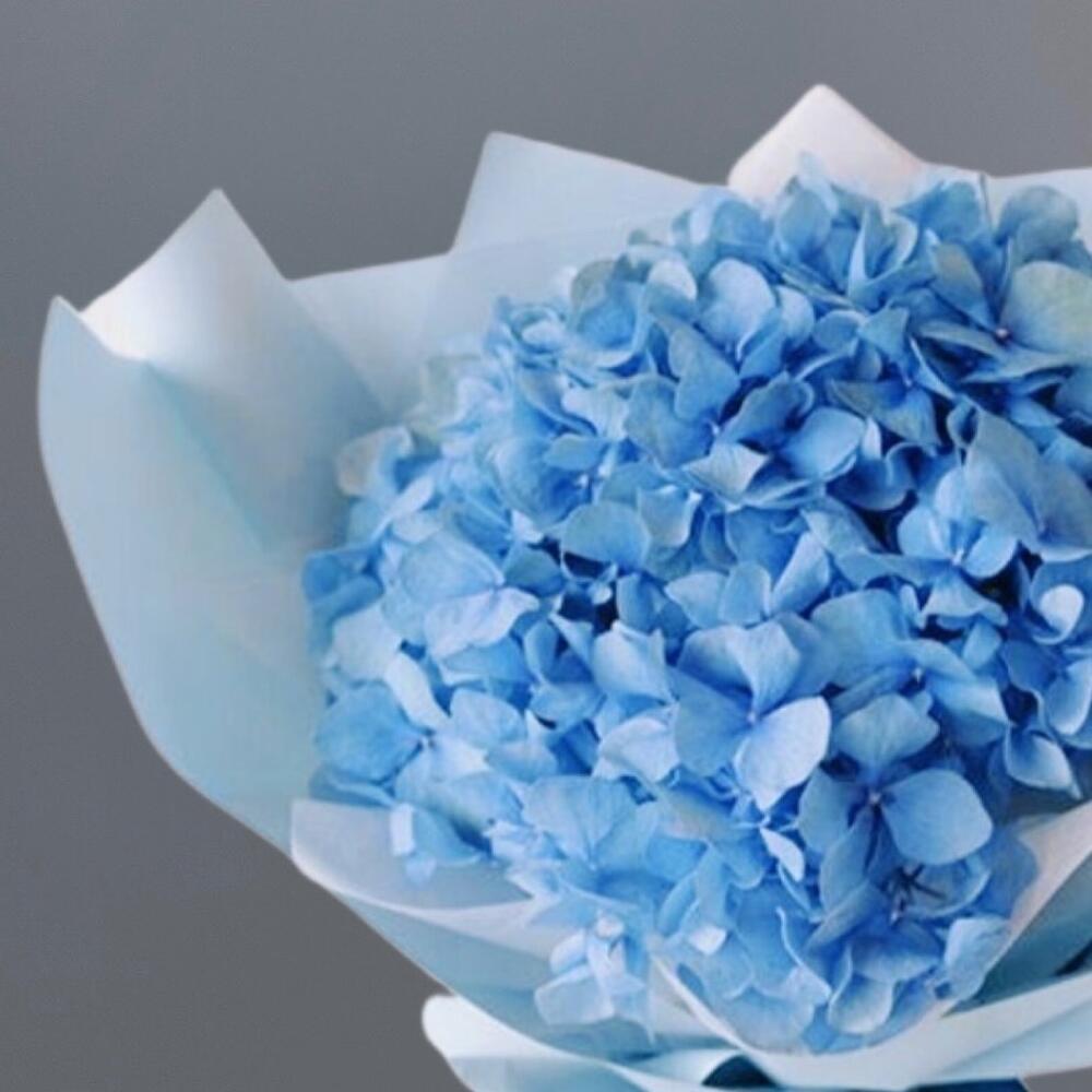 Подарите этот букет себе или близкому человеку, и позвольте ему принести в вашу жизнь свежесть, красоту и неповторимый шарм голубой гортензии