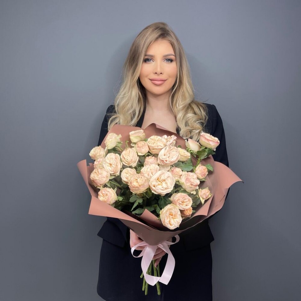 - Этот букет из кустовых пионовидных роз в нежной кремовой окраске является настоящим произведением искусства. Каждый цветок напоминает о том, что красота может быть элегантной и изысканной. Розы символизируют любовь и страсть, а кремовый оттенок придает им нежность и романтику.