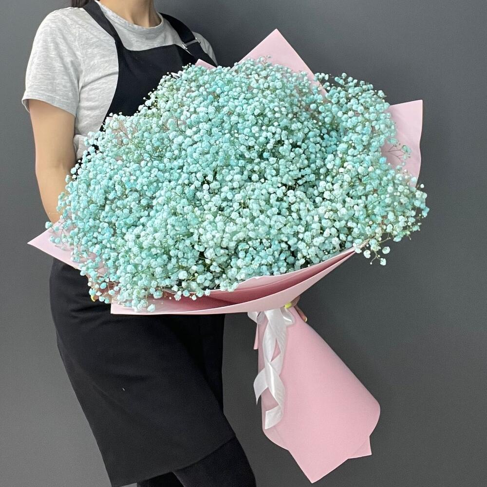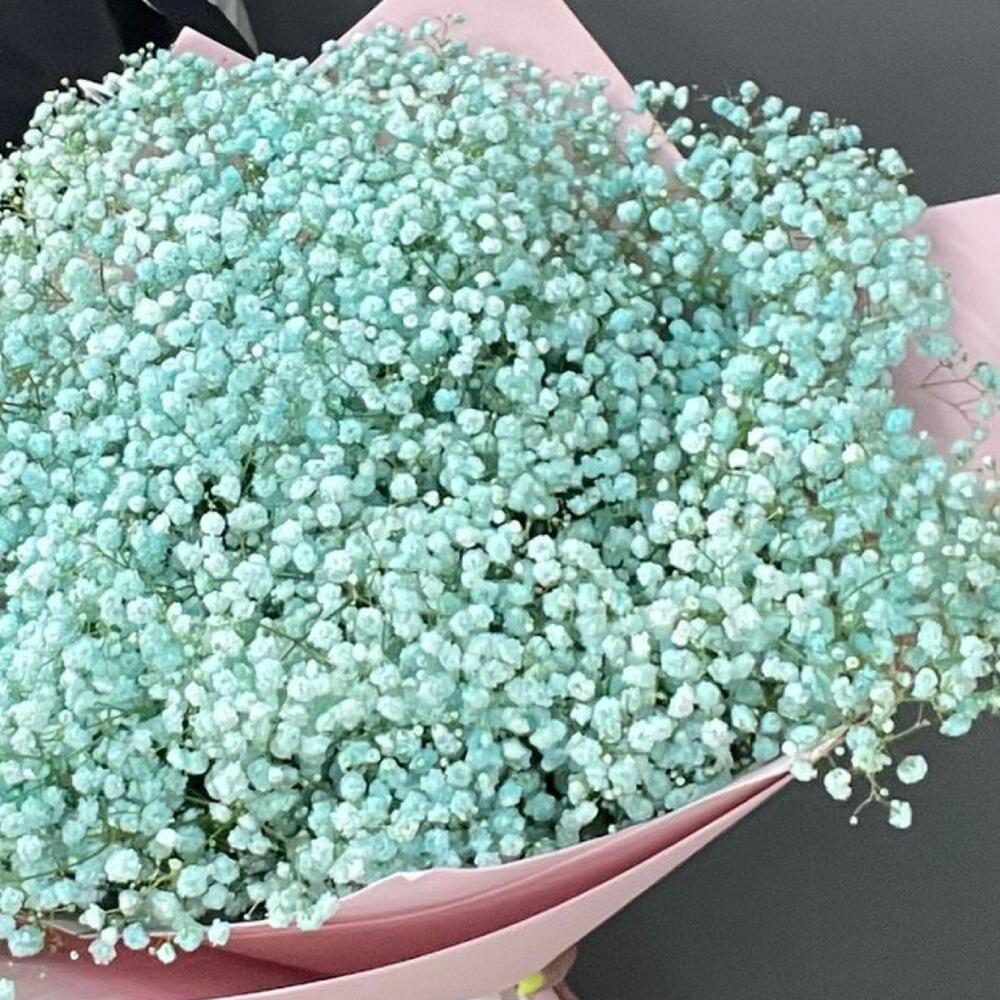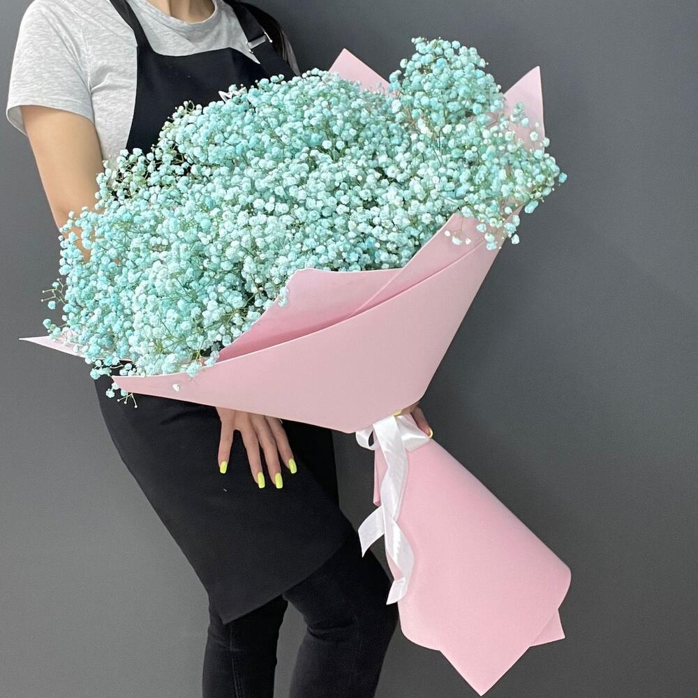 Подарите этот букет себе или близкому человеку, и позвольте ему принести в вашу жизнь легкость, чистоту и неповторимую красоту голубых гипсофил
