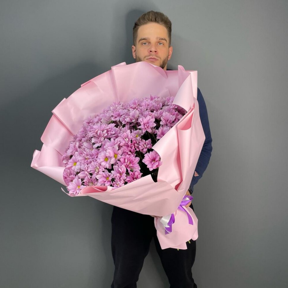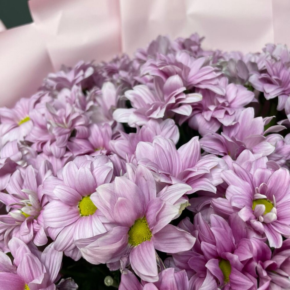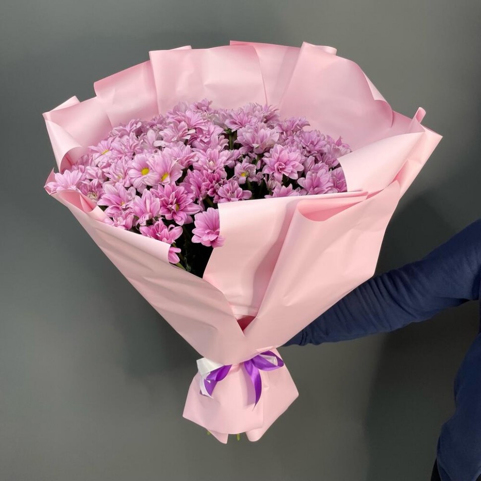 - Этот восхитительный букет из кустовых хризантем сиреневого цвета — это настоящий праздник для глаз и души. Нежные, легкие и воздушные цветы создают атмосферу легкости и беззаботности, напоминая о том, что жизнь прекрасна и полна возможностей.