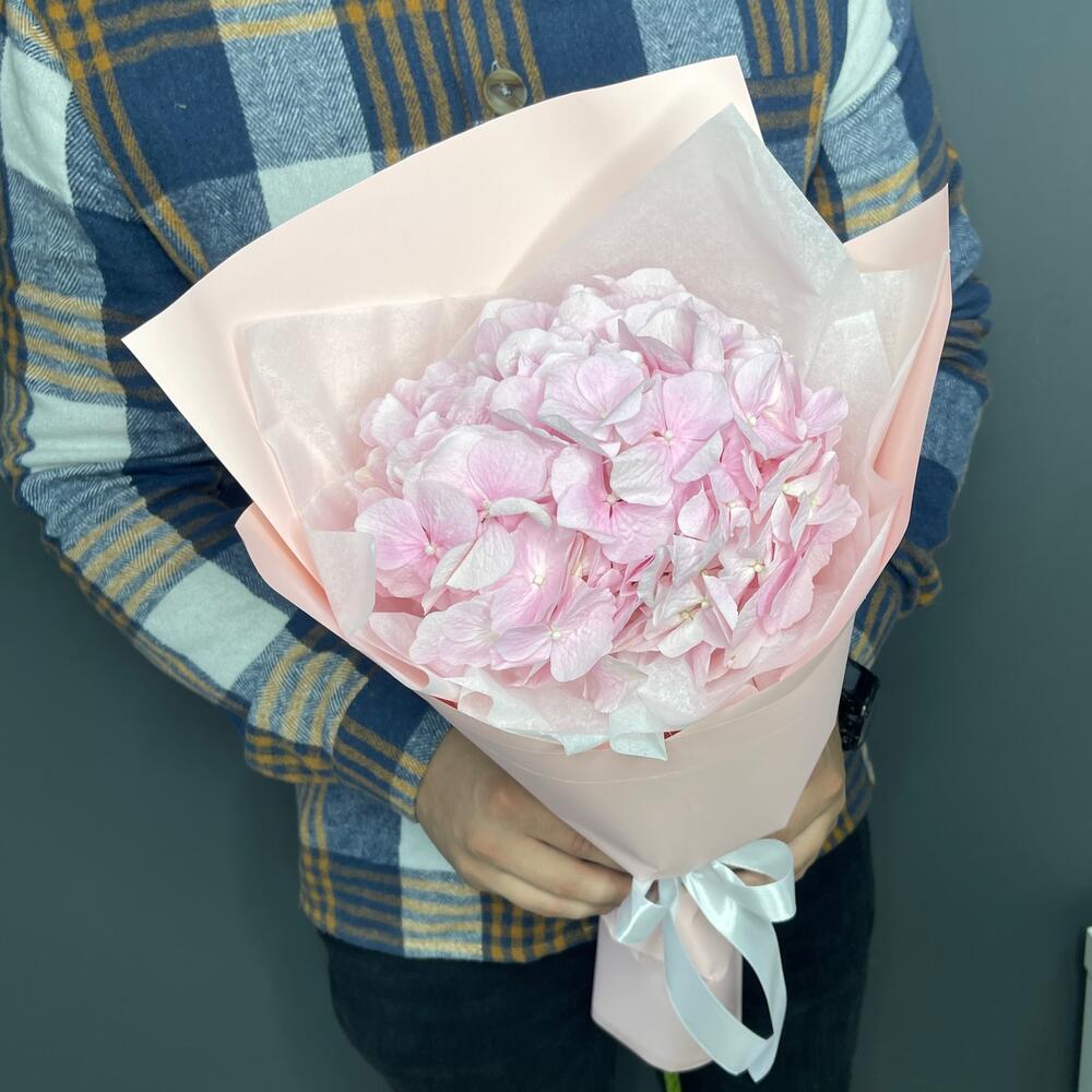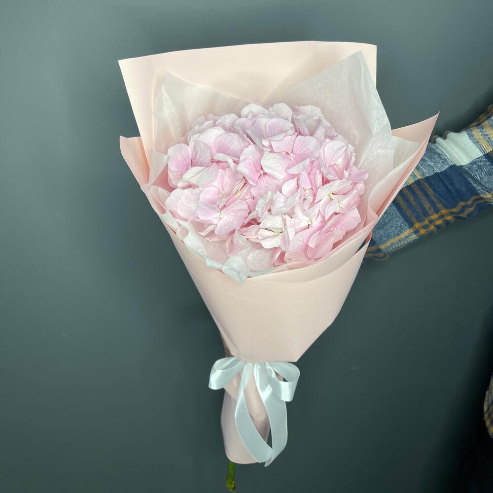 • Нежный букет из одной розовой гортензии в нежно розовой упаковке – это настоящее произведение цветочного искусства. Розовый цвет гортензии символизирует романтику, нежность и чувственность. Каждый лепесток этого цветка словно создан для того, чтобы вызывать восхищение и напоминать о красоте жизни.