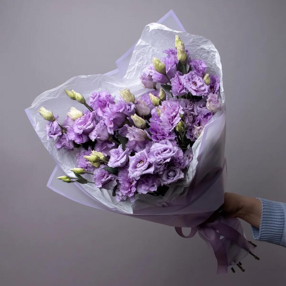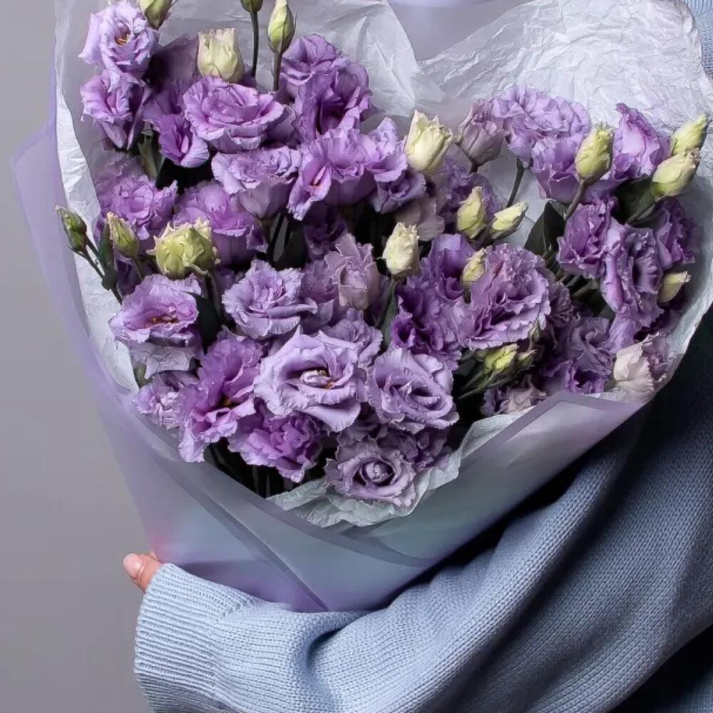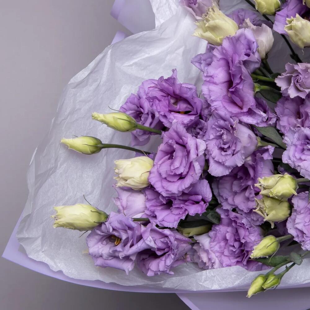- Этот букет из фиолетовой эустомы в бумаге эколюкс — это настоящее произведение искусства. 9 изысканных цветков, каждый из которых словно создан для того, чтобы удивлять и восхищать своей красотой. Фиолетовый цвет эустомы символизирует таинственность и глубину чувств, что делает этот букет идеальным подарком для любого случая — от дня рождения до свадьбы.