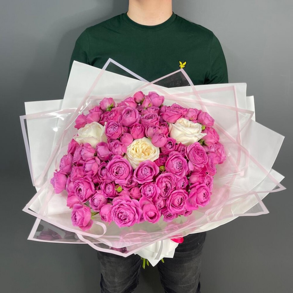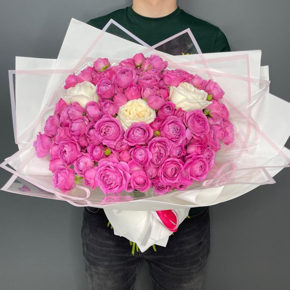 - Этот букет из кустовых пионовидных роз розового цвета и белых одноголовых роз – это настоящая симфония красоты и изящества. Каждый цветок словно создан для того, чтобы удивлять и восхищать своей нежностью и изысканностью. Розовые кустовые розы символизируют любовь и страсть, а белые одноголовые розы придают букету нежности и изящества. Их лепестки образуют гармоничное сочетание цветов и оттенков, создавая неповторимую атмосферу романтики и чувственности. Упаковка, выполненная в элегантных тонах, придает этому букету особую изысканность и элегантность. Это прекрасный подарок для тех, кто ценит красоту и хочет показать свою любовь и заботу о близких людях. Этот букет станет ярким украшением интерьера и напомнит о важности любви и романтики в нашей жизни