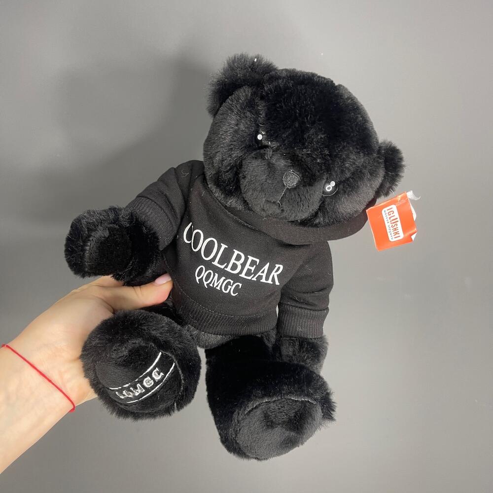Черный мишка в черном свитере с капюшоном и надписью COOLBEAR — это не просто игрушка, это настоящий символ уюта и стиля, который обязательно понравится каждому!