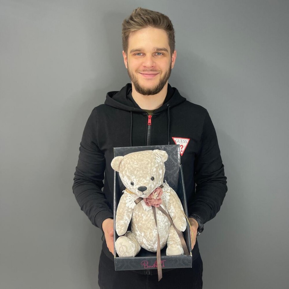 - Этот велюровый мишка с брошью — настоящее произведение искусства! Его мягкий и приятный на ощупь мех создает ощущение уюта и комфорта, а яркая брошь добавляет игрушке стильности и изысканности. Благодаря своей привлекательной внешности, этот мишка станет любимцем не только детей, но и взрослых, которые ценят красоту и качество.