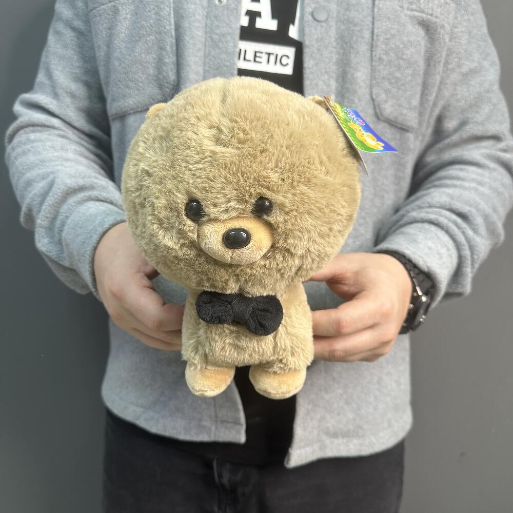- Плюшевая собачка с бантиком 25 см — уютная игрушка с милым дизайном:
