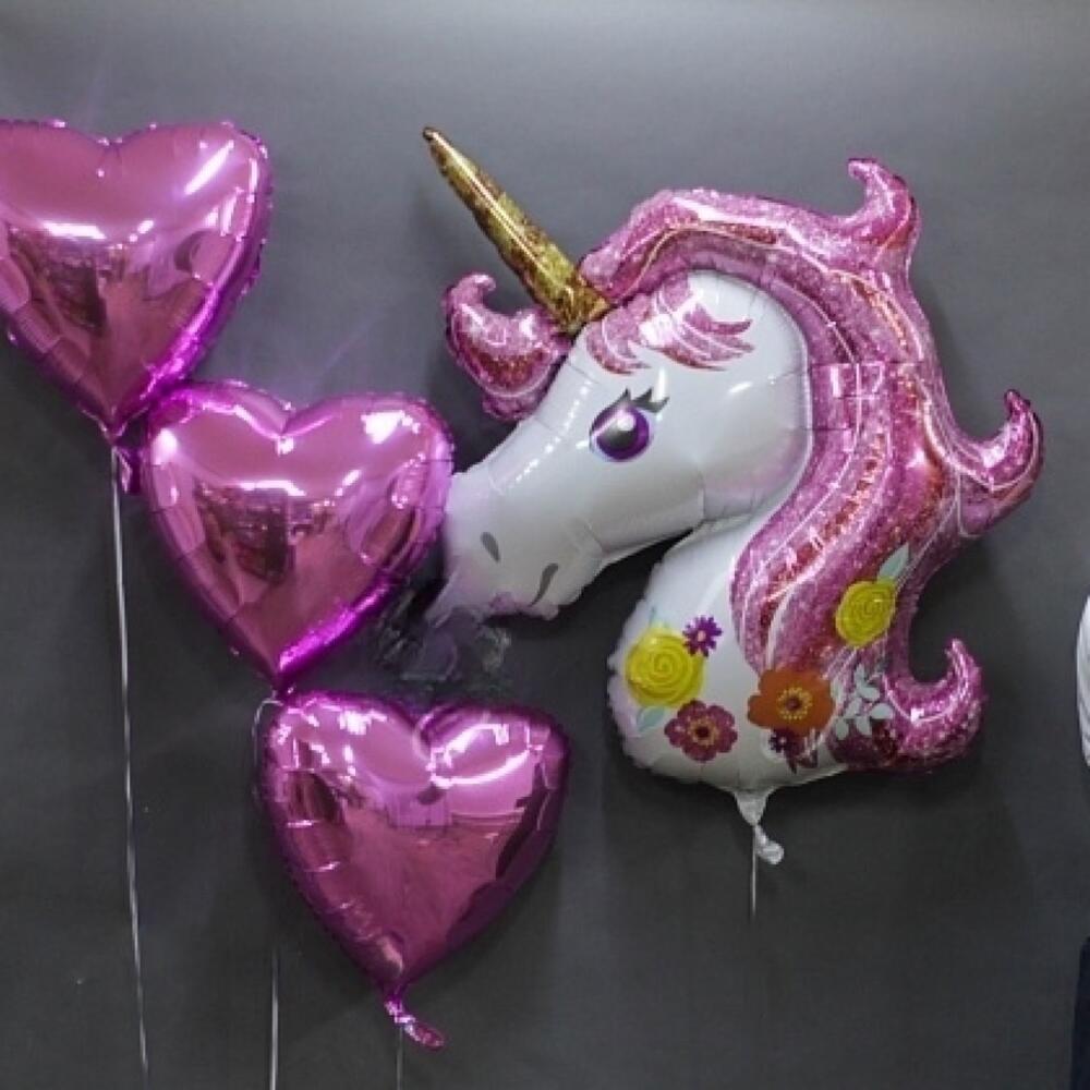 Фольгированные шары сердце — 45 см. Фольгированный шар единорог — 108 см