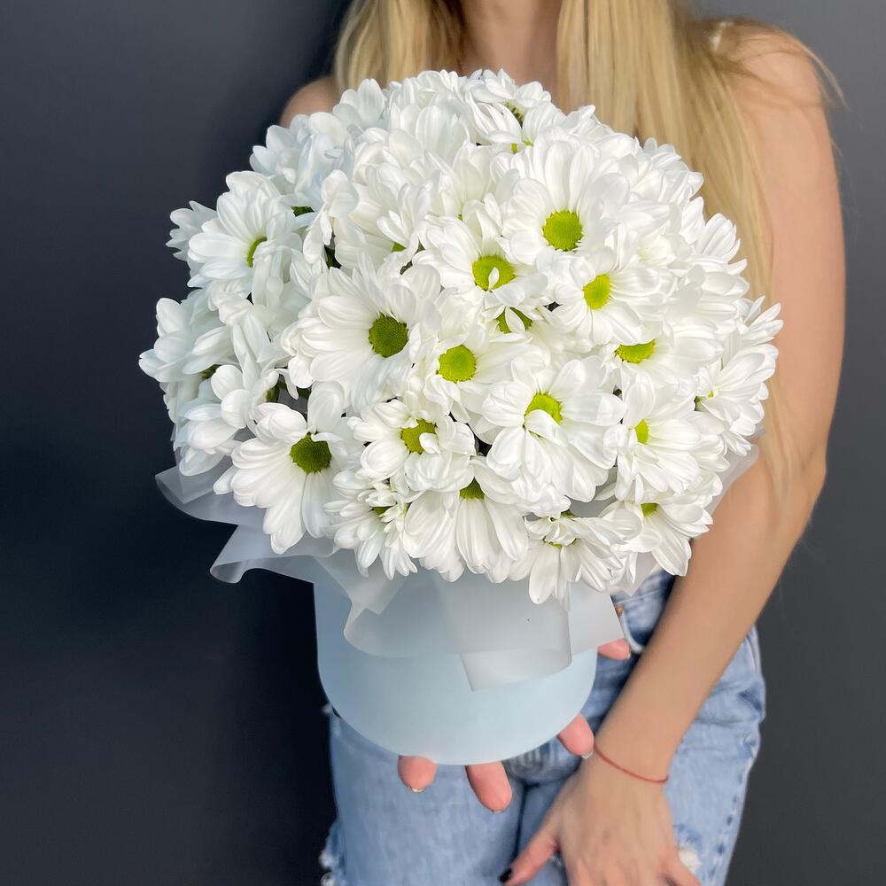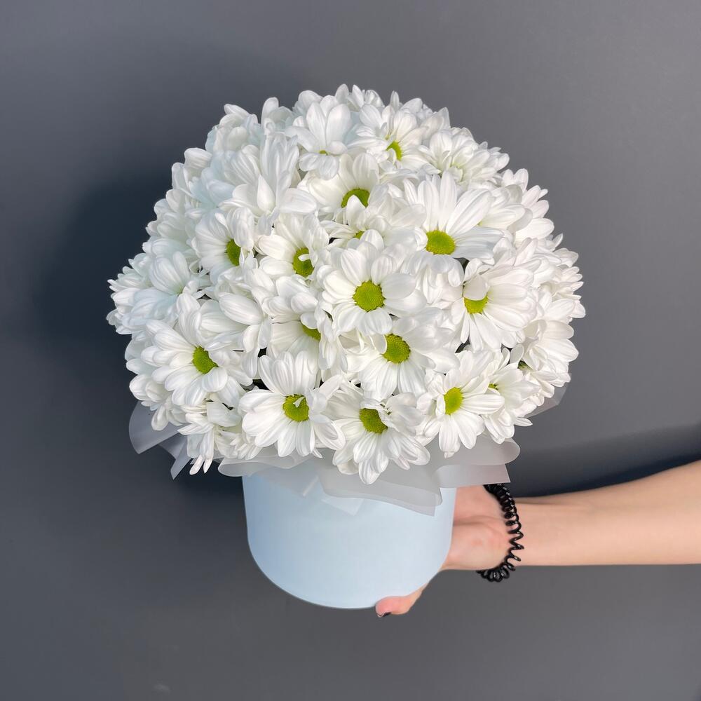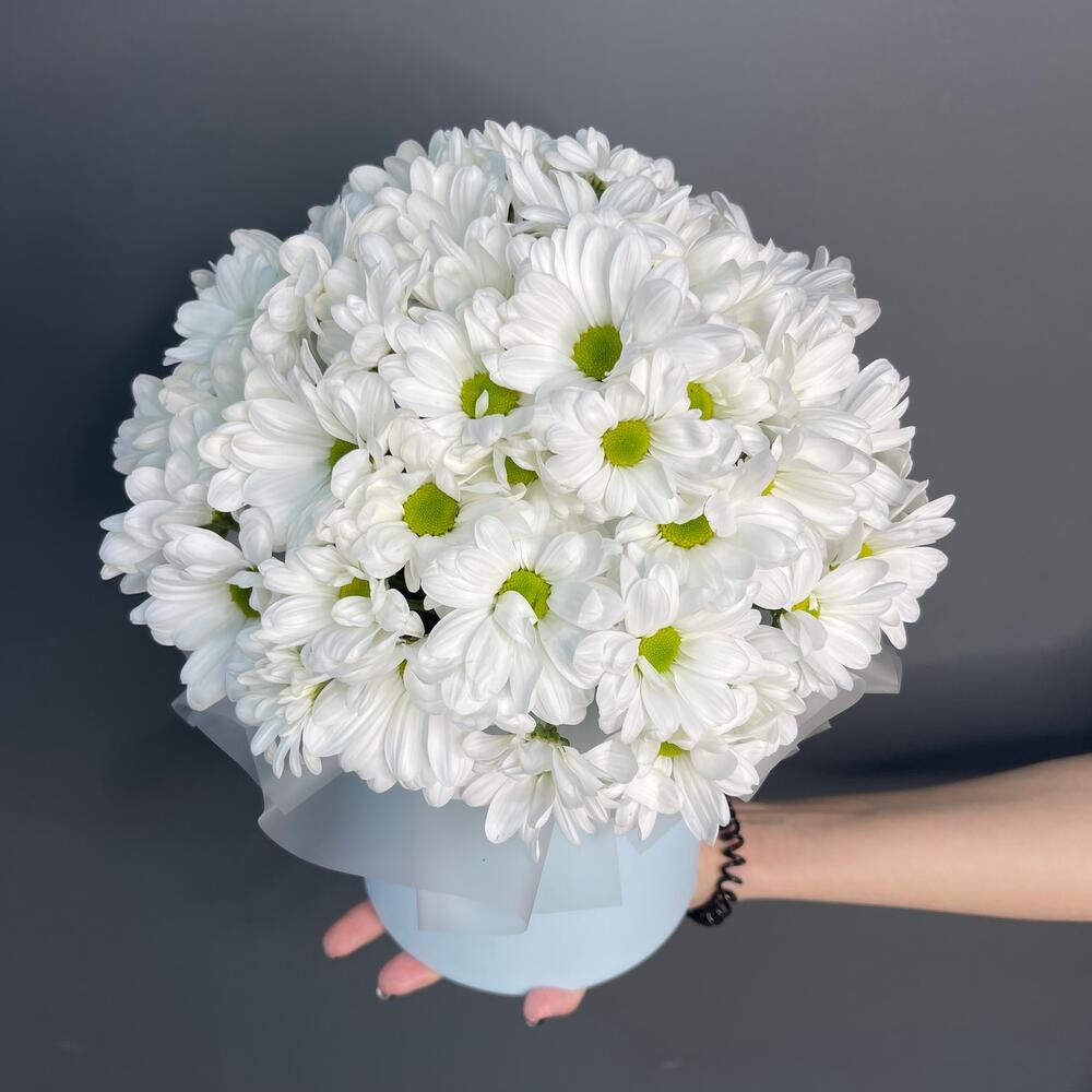 Хризантема кустовая — 5 шт. Коробка шляпная — 1 шт
