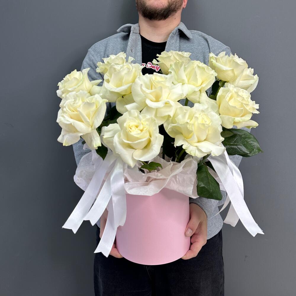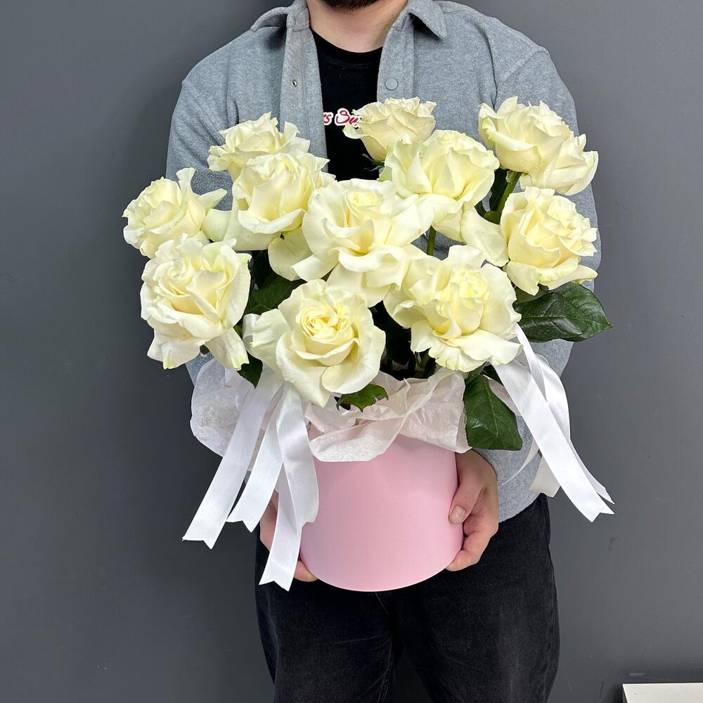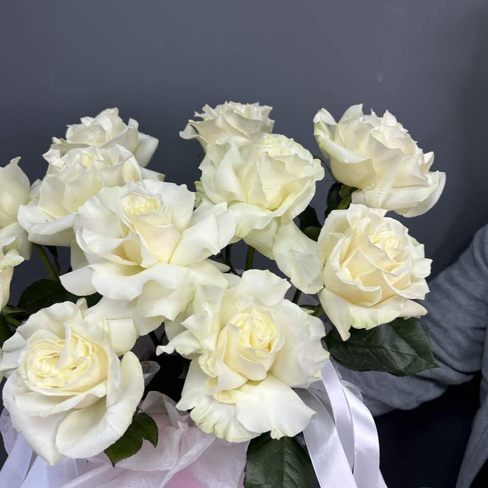 - Бокс из 11 французских белых роз — символ чистоты, нежности и элегантности.