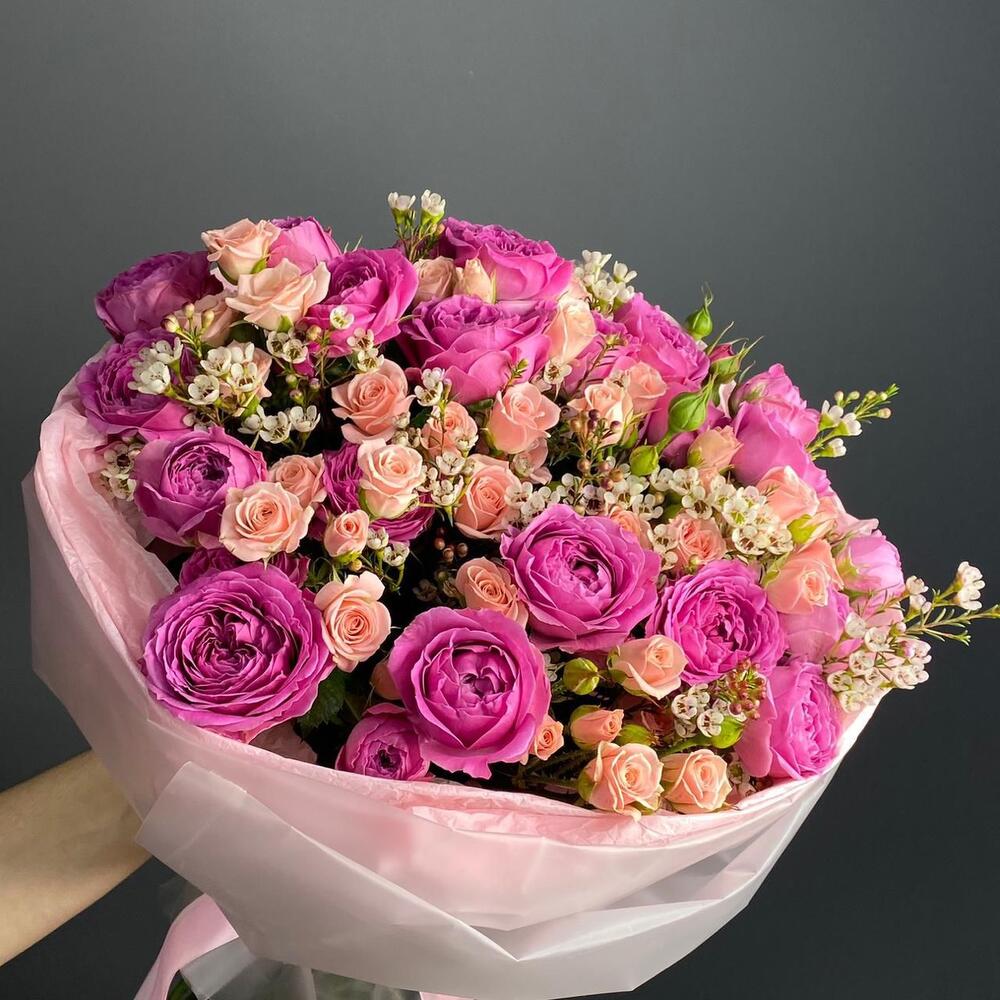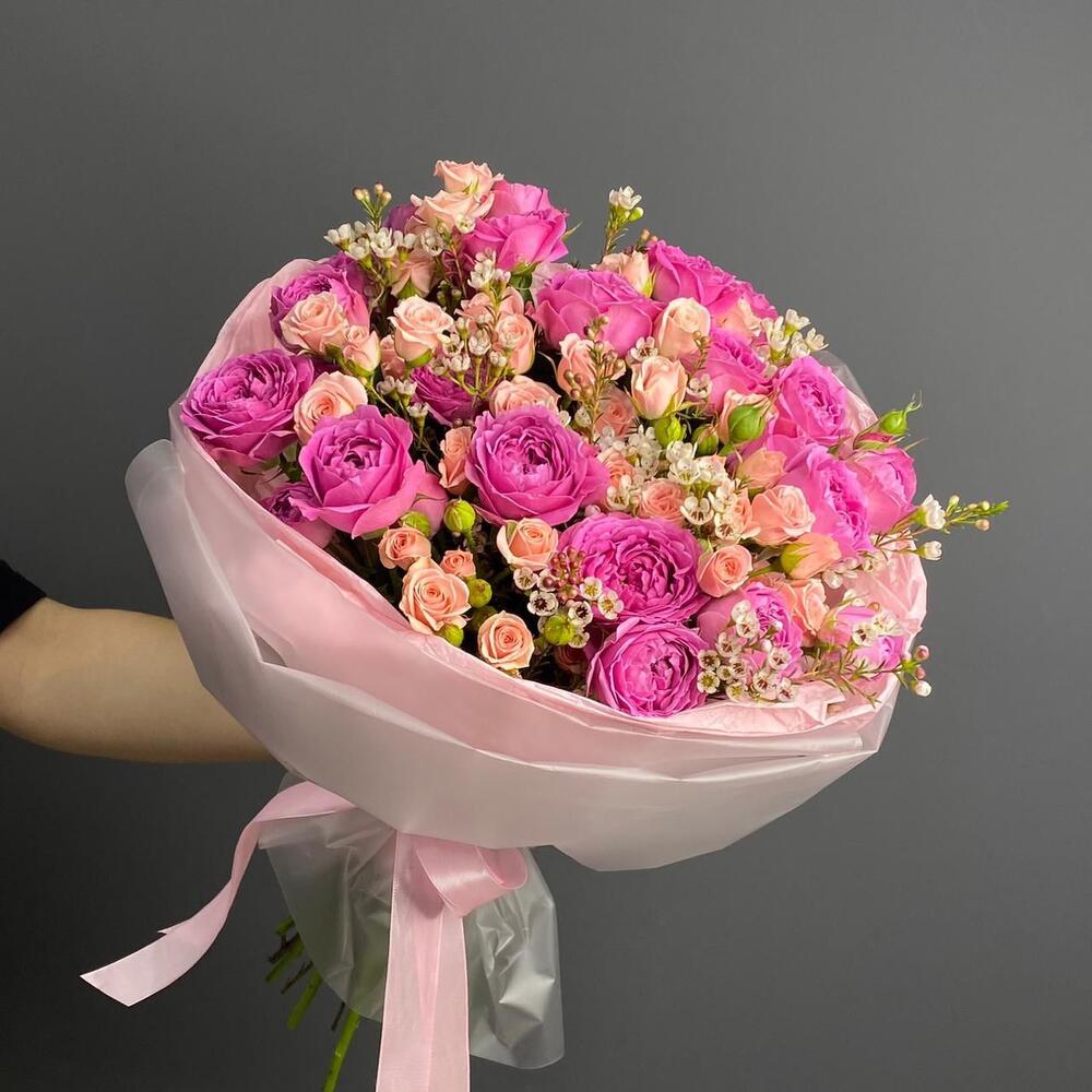 Кустовая роза — 11 шт Хамелациум — 4 шт Misty bubbles — 7 шт