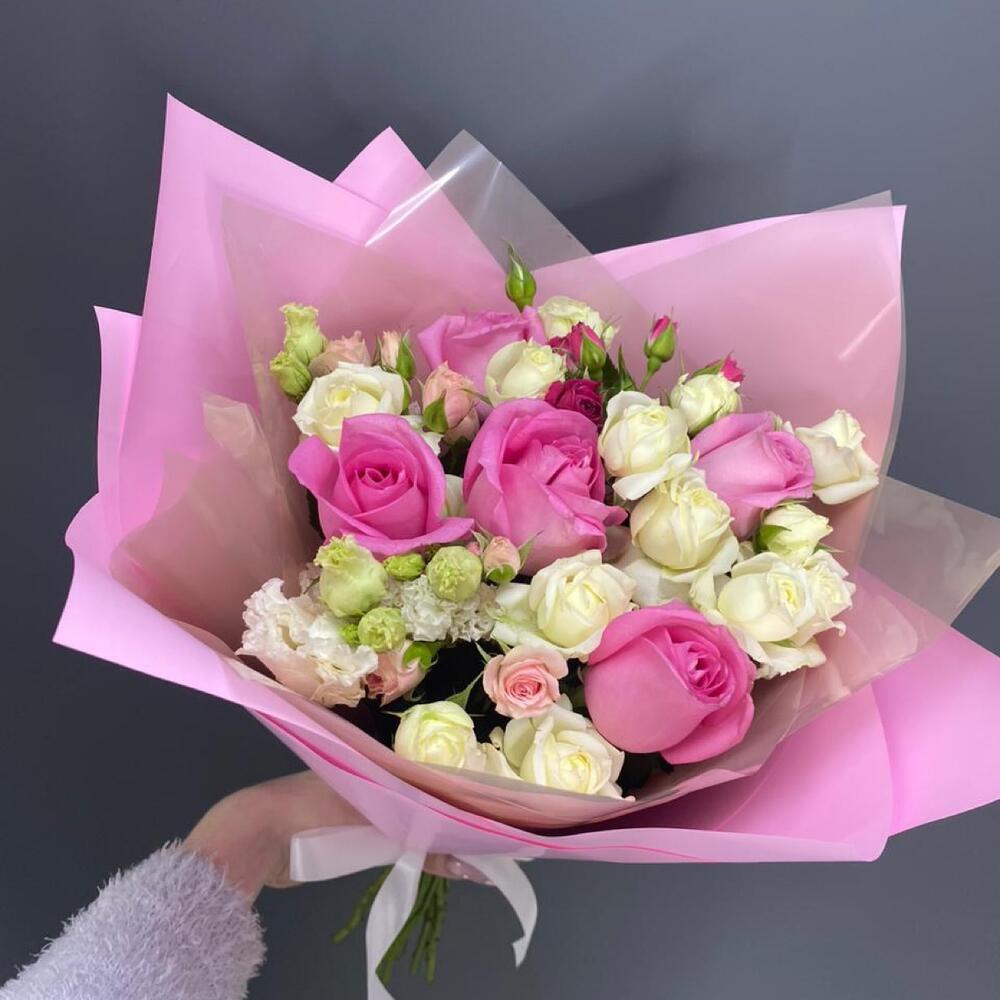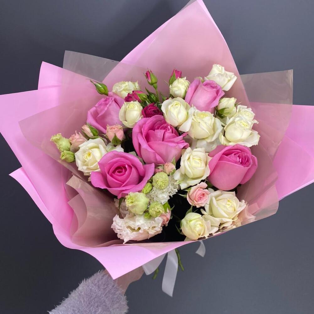 Роза — 5 шт Кустовая роза — 4 шт Эустома — 1 шт