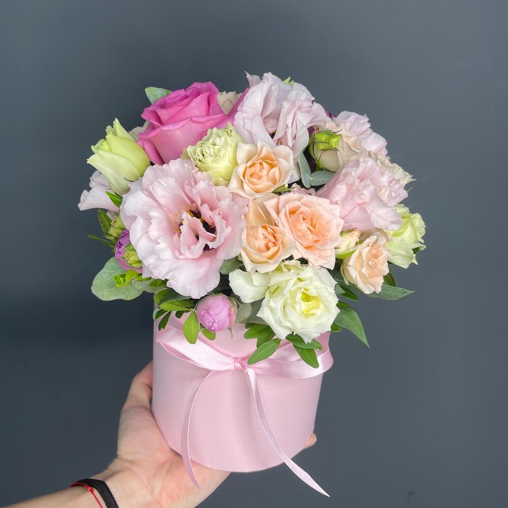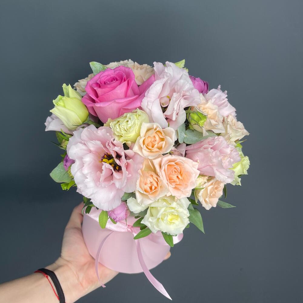 - Эта изысканная коробочка из эустомы, роз и кустовых роз в нежных тонах превратит ваш дом в настоящий сад романтики и элегантности.