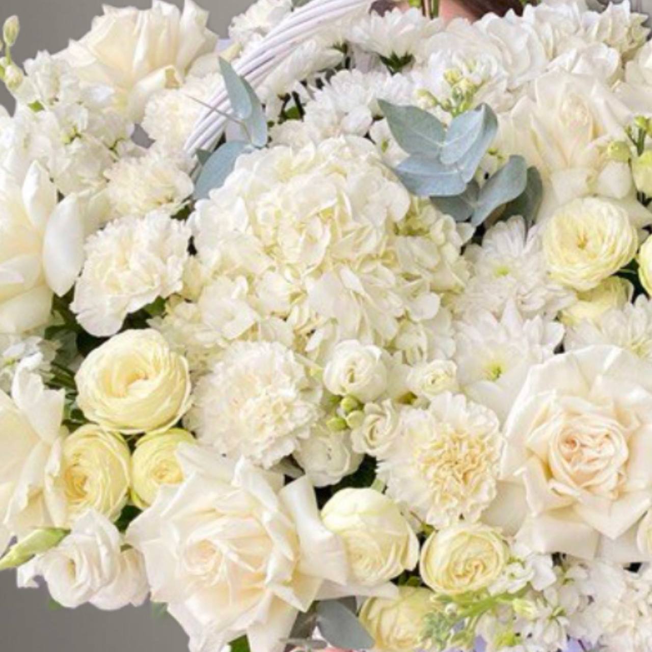 Роза французская — 13 Эустома — 11 Хризантема кустовая — 11 Маттиола — 9 Гвоздика — 7 Гортензия — 3 Эвкалипт