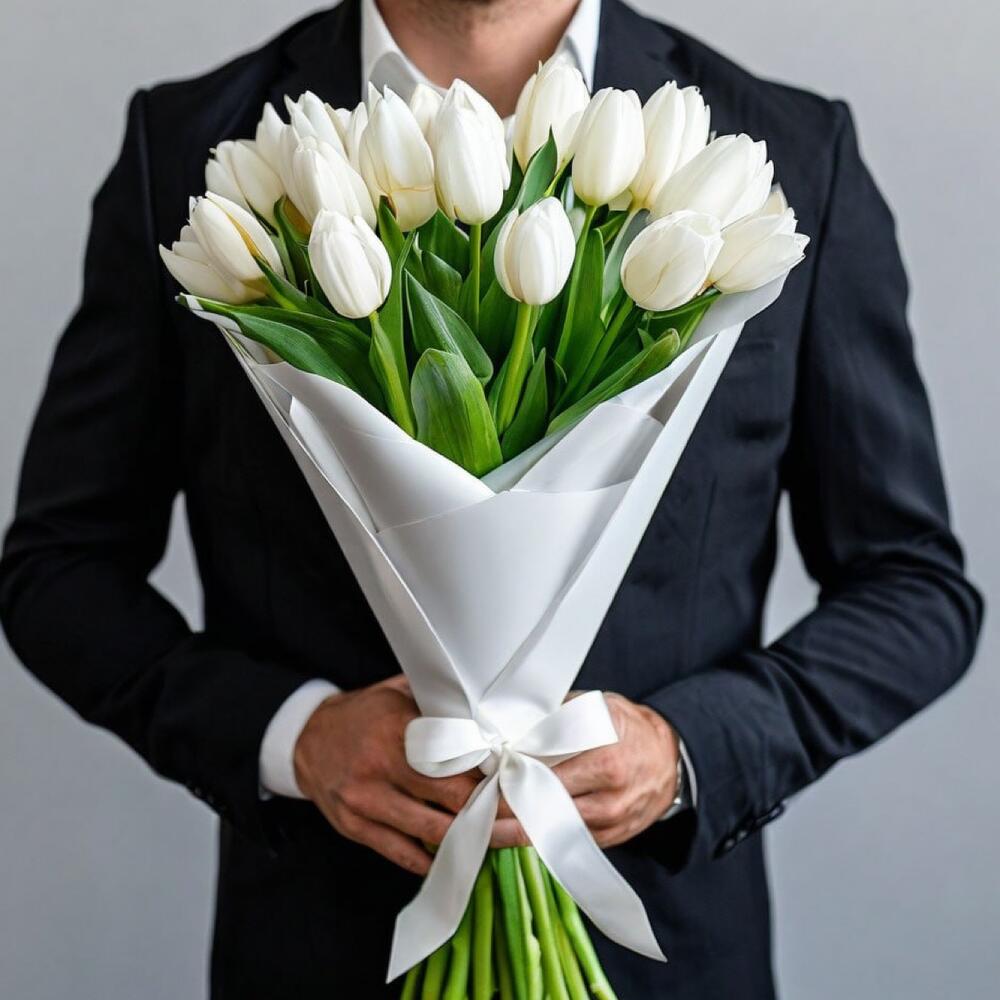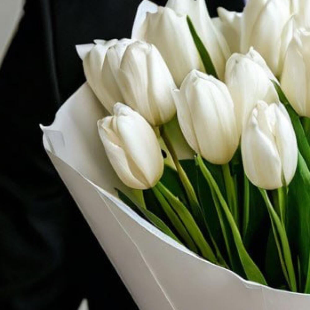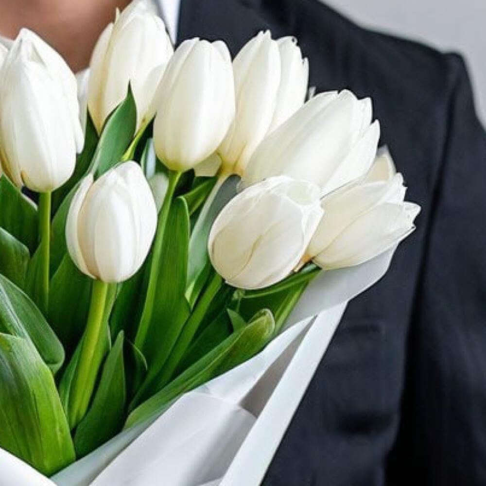 Букет из 15 белоснежных тюльпанов — символ чистоты, нежности и изысканности.