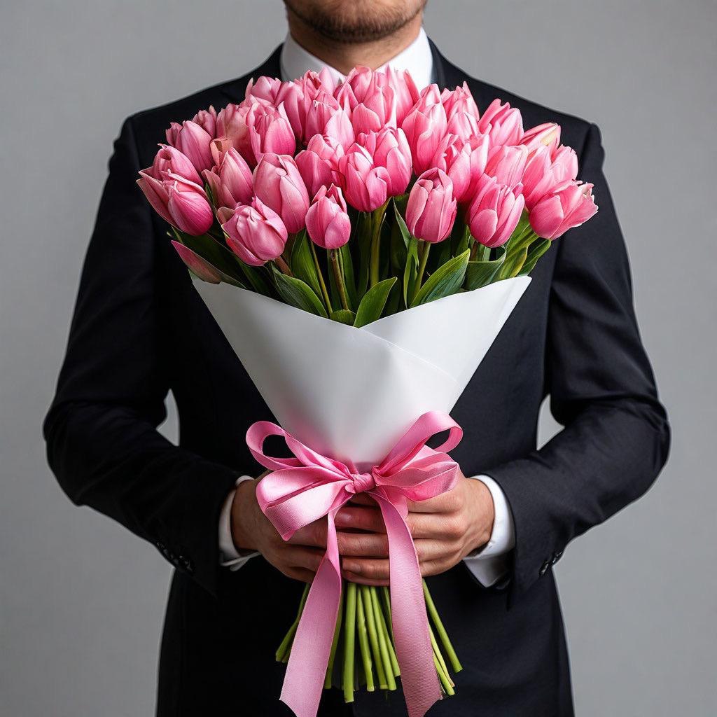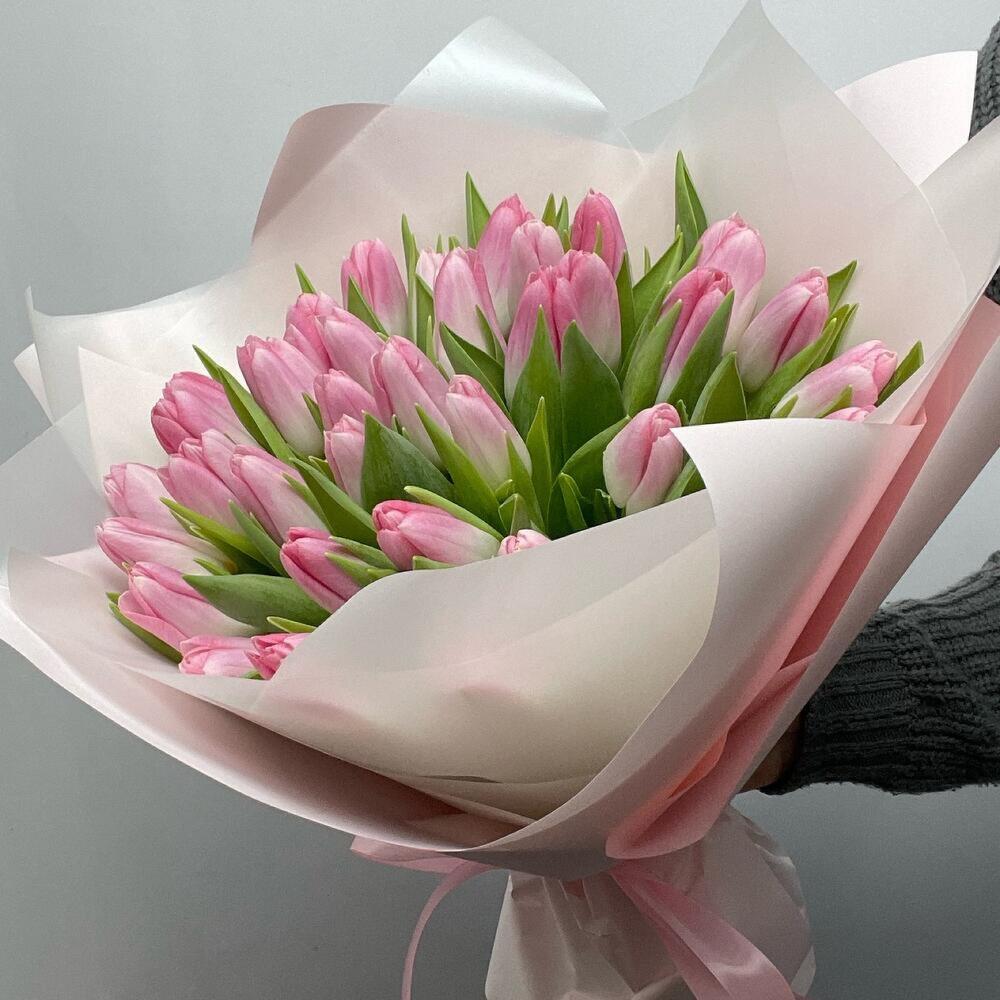 - Этот букет идеально подойдет для того, чтобы выразить свою нежную любовь, признательность или благодарность. Нежные розовые оттенки создадут атмосферу уюта и тепла, подчеркнут вашу заботу и внимание к получателю. Букет из 35 розовых тюльпанов прекрасно подойдет как для подарка любимому человеку, так и для поздравления коллеги или друга.