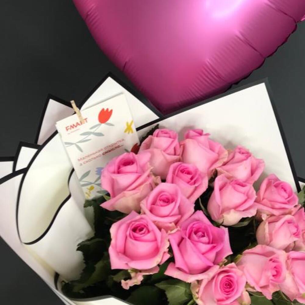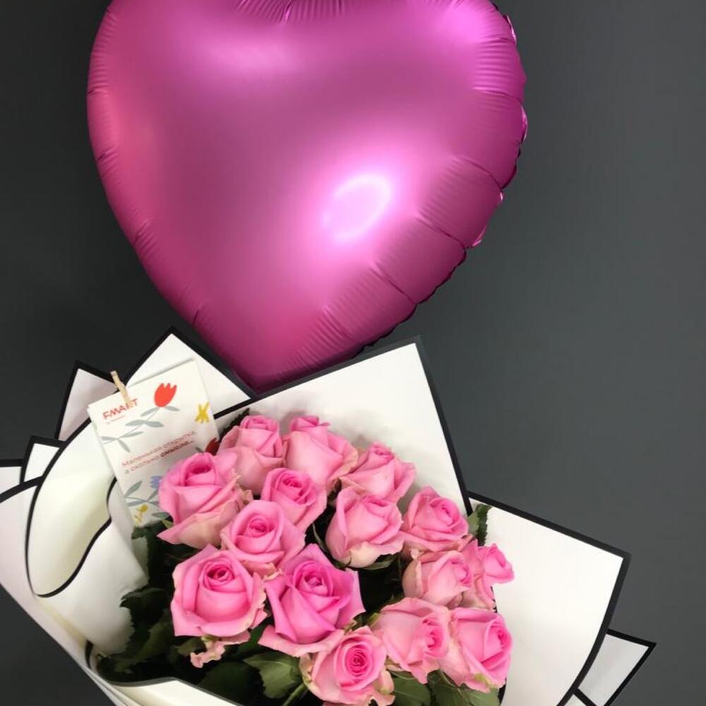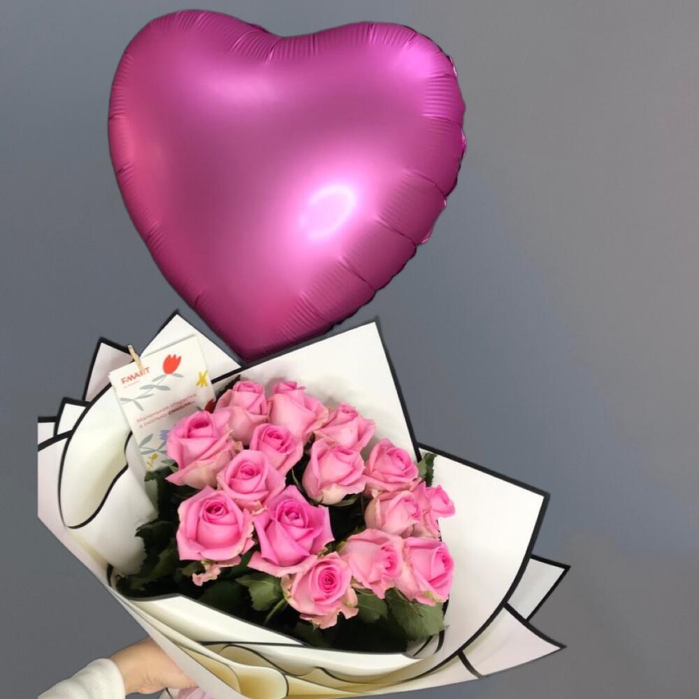 Роза Ревиваль — 15 шт Шар сердце — 1 шт Упаковка — 2 шт