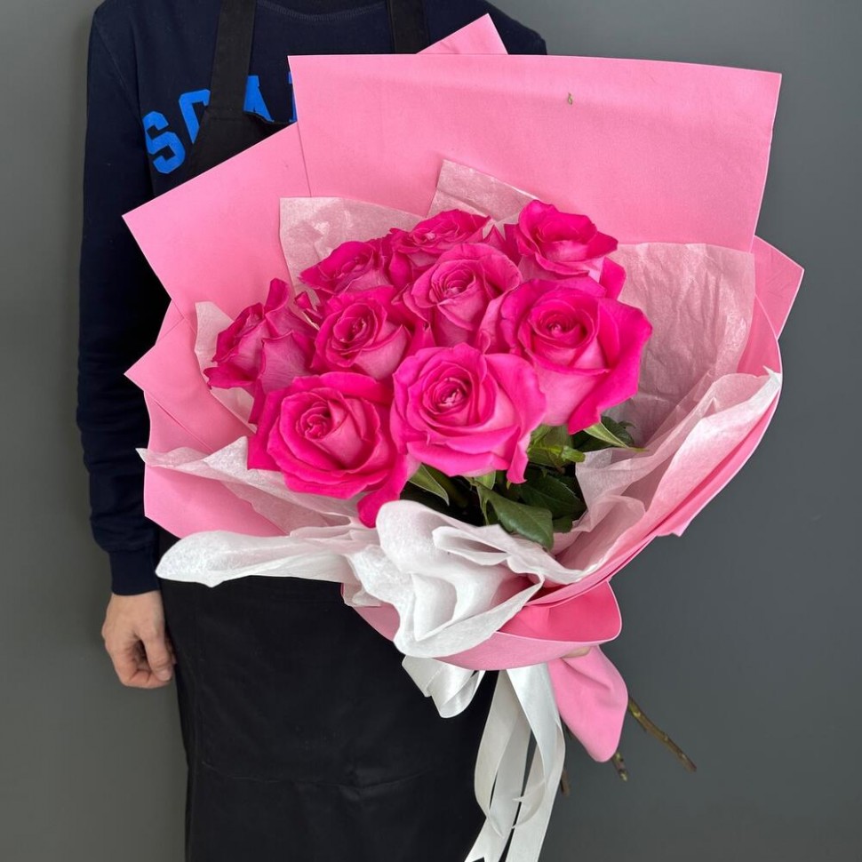 • Этот букет 11 роз розовых в розовой упаковке — это настоящая классика, которая никогда не выходит из моды. Каждая роза в этом букете — это символ любви, нежности и красоты. Розовый цвет — это цвет страсти и романтики, который заставляет сердца биться сильнее. Этот букет подарит незабываемые эмоции и оставит яркие воспоминания на долгие годы. Он будет упакован в красивую розовую упаковку, чтобы подчеркнуть нежность и красоту цветов. Этот букет — прекрасный подарок для любого случая: от Дня Рождения до Дня Святого Валентина. Он порадует и заставит улыбаться, и станет лучшим проявлением ваших чувств к близкому человеку. Не упустите возможность подарить этот прекрасный букет и создать незабываемые моменты вместе!