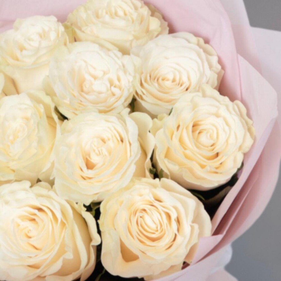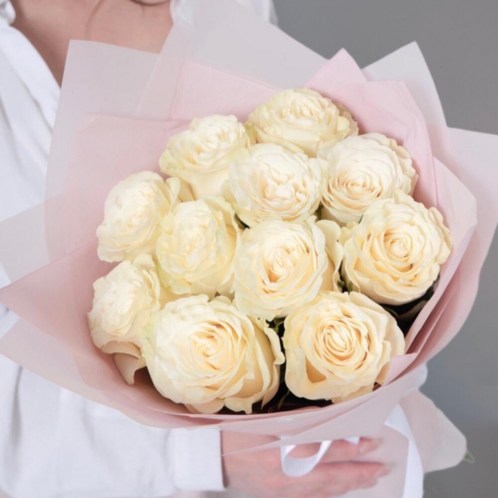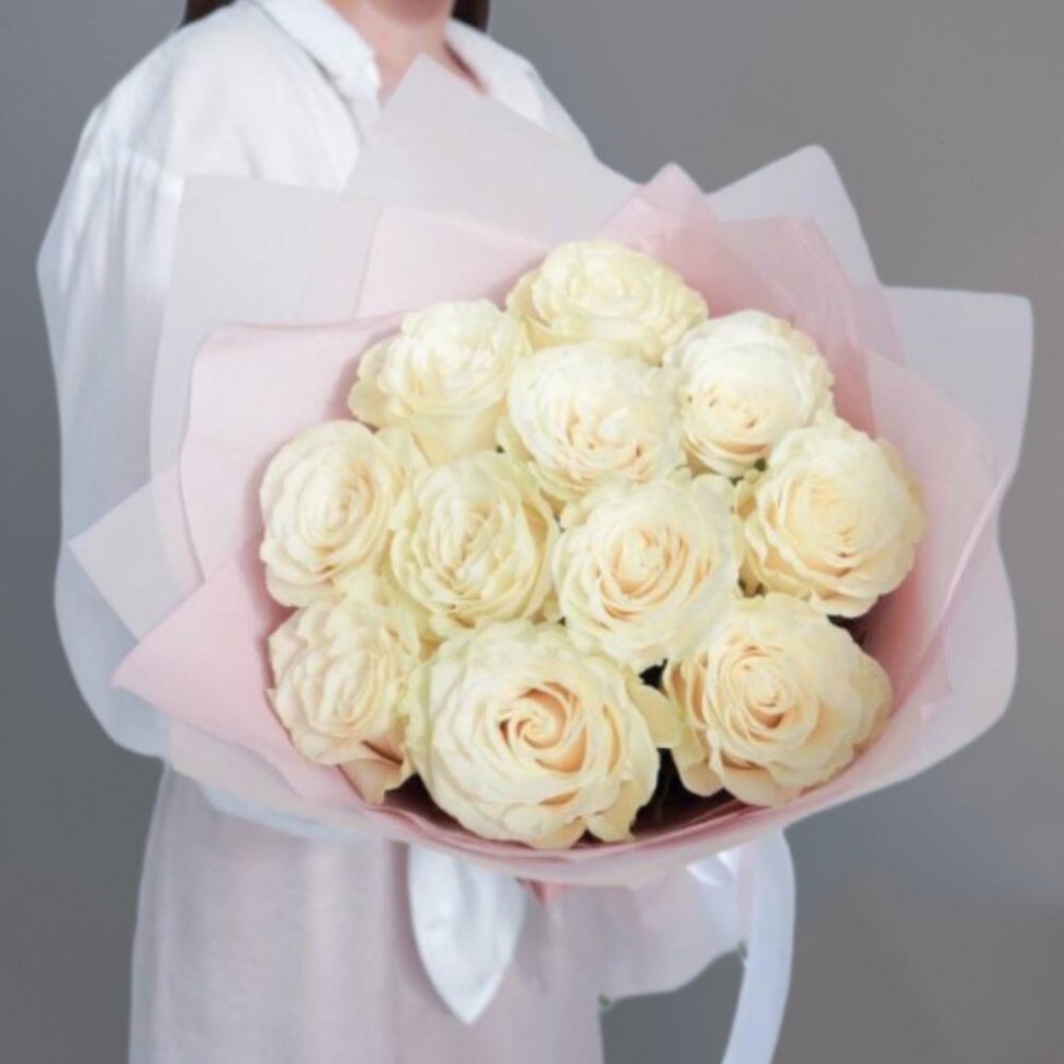 - Эта нежная композиция из 11 белых роз в розовой матовой упаковке — это настоящее произведение искусства, которое заставляет сердца биться быстрее от восторга. Белый цвет символизирует чистоту и невинность, а форма цветков напоминает о женственности и элегантности.
