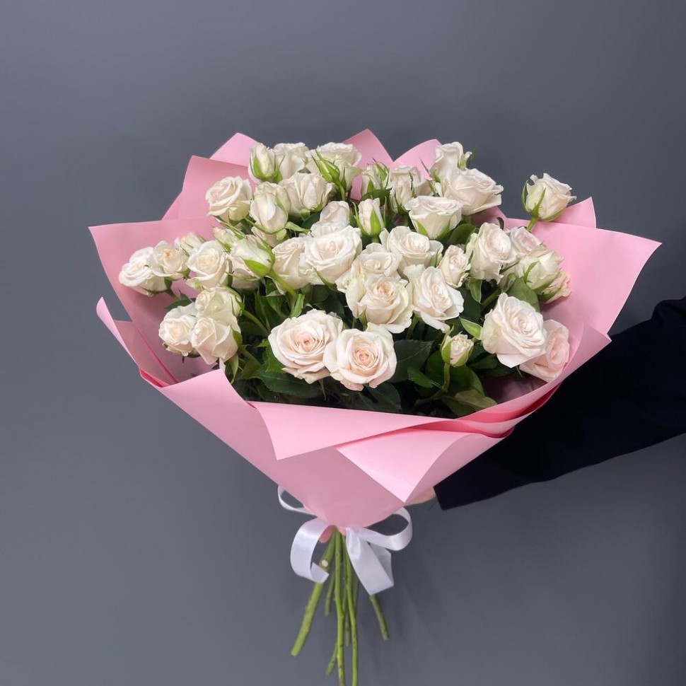 • Этот букет из кустовых роз в кремовом оттенке — настоящий символ элегантности и изысканности. Каждый цветок словно создан, чтобы привлечь внимание и вызвать восторг.