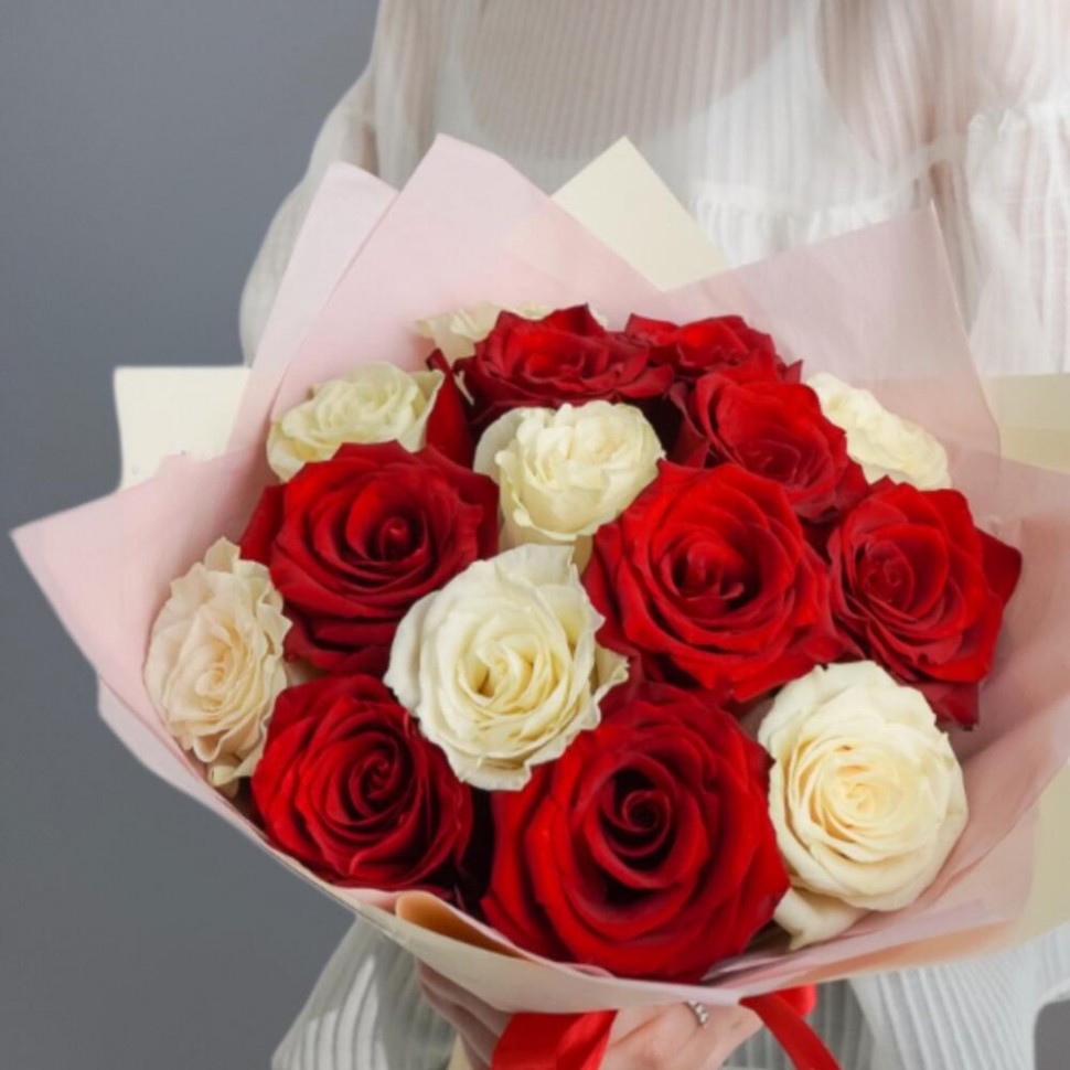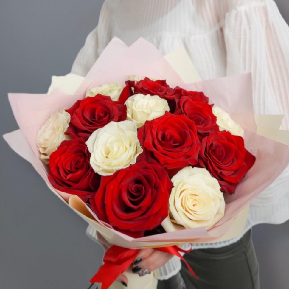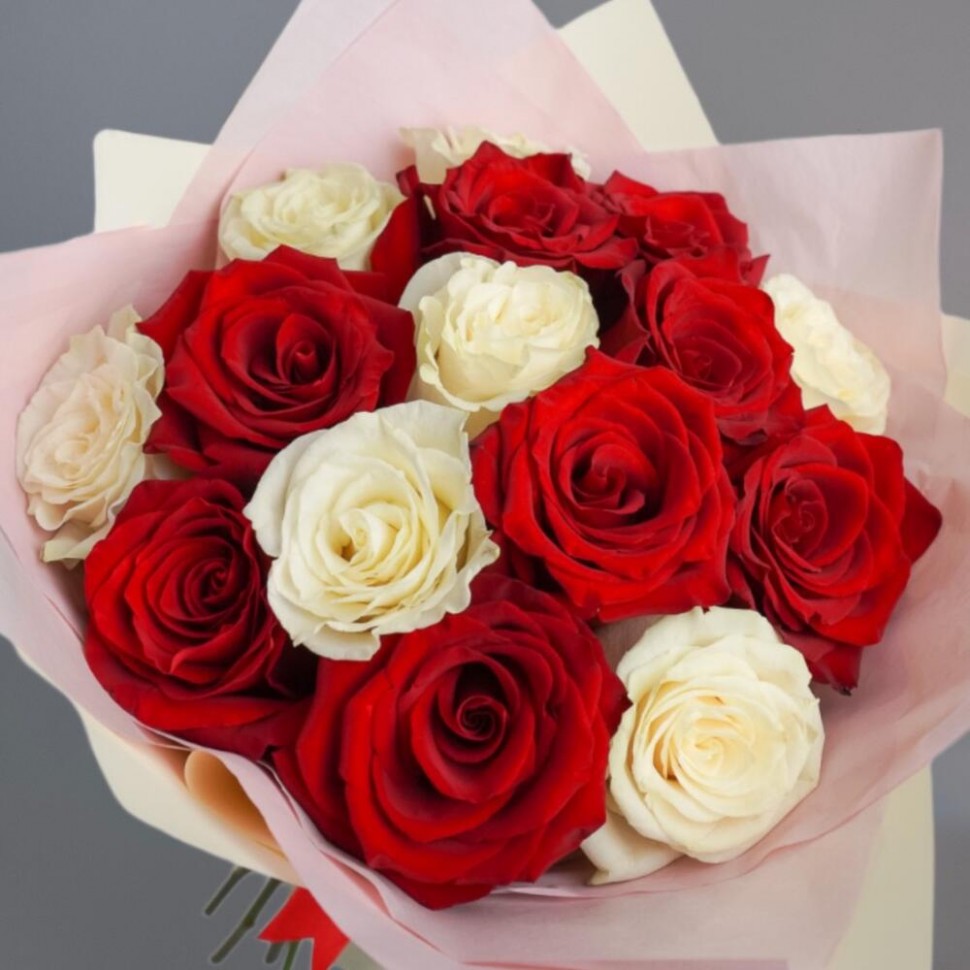 - Эта невероятно красивая композиция из 15 белых и красных роз в розовой матовой упаковке — это настоящий шедевр, который заставит сердца биться быстрее от восторга. Белый цвет символизирует чистоту и невинность, а красный — страсть и любовь. Форма цветков напоминает о женственности и элегантности, а их сочетание создает неповторимую гармонию и притягательность. Каждый цветок в этой композиции выполнен с высочайшим мастерством и любовью к деталям, что делает ее неповторимой и уникальной.