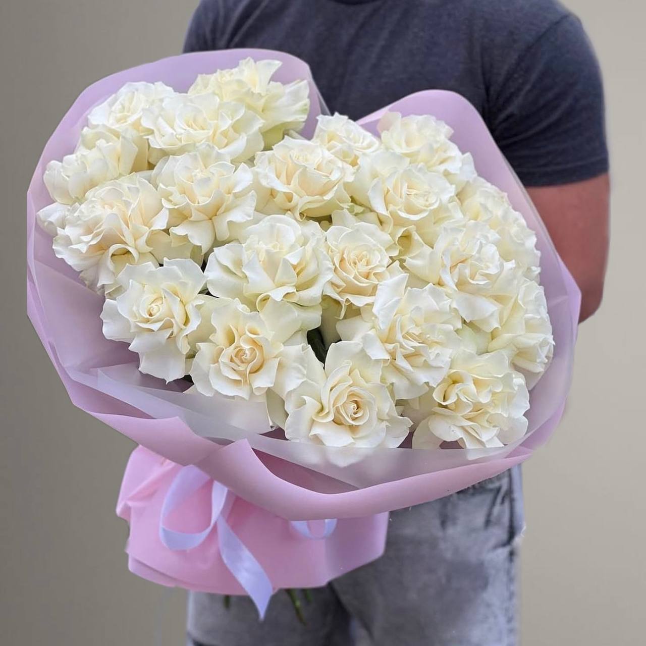 - Букет из 21 французской розы белого цвета – это воплощение элегантности и утонченности.