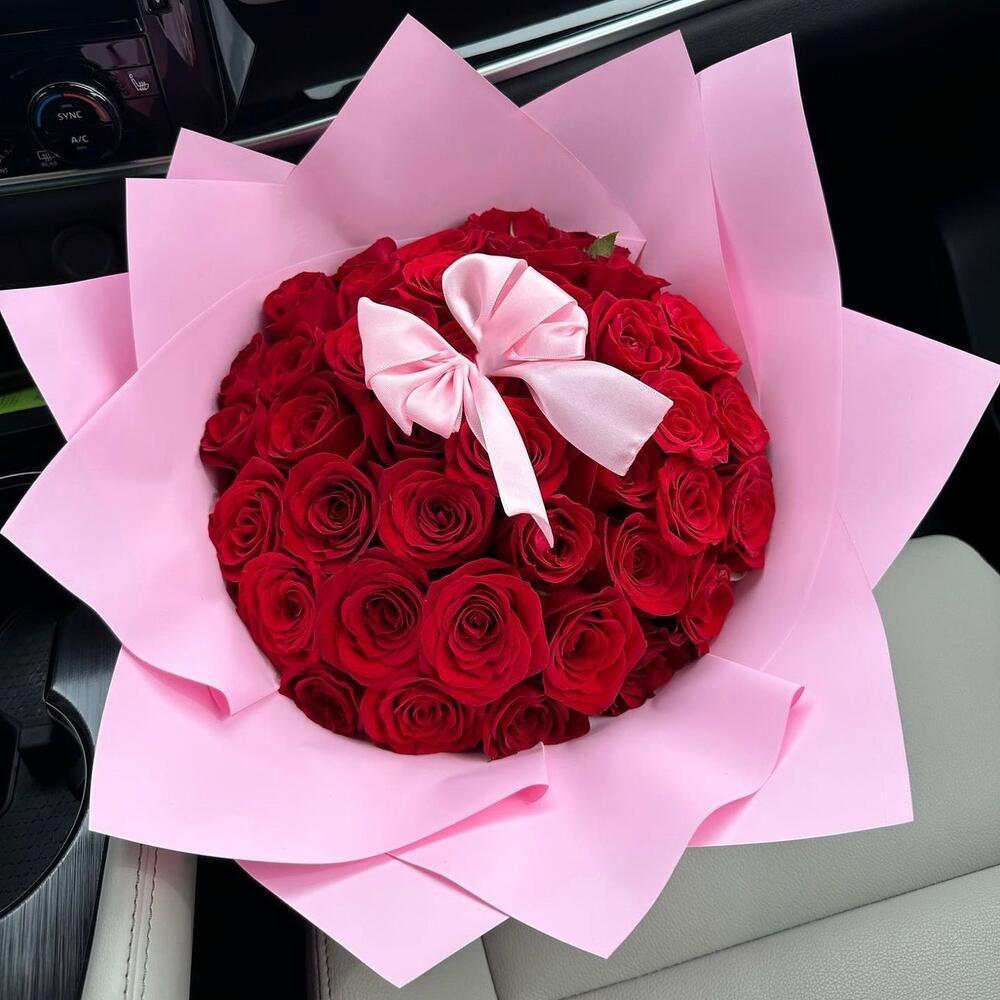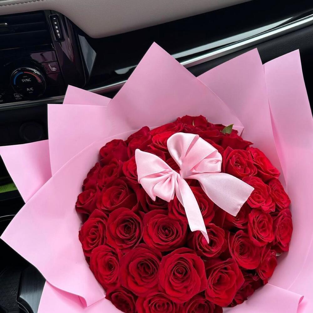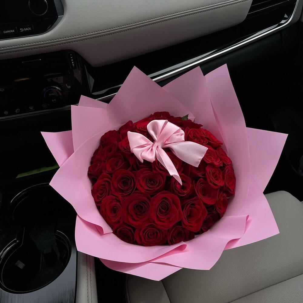 • Символика: алые розы — знак страсти, розовый акцент — романтики и заботы;