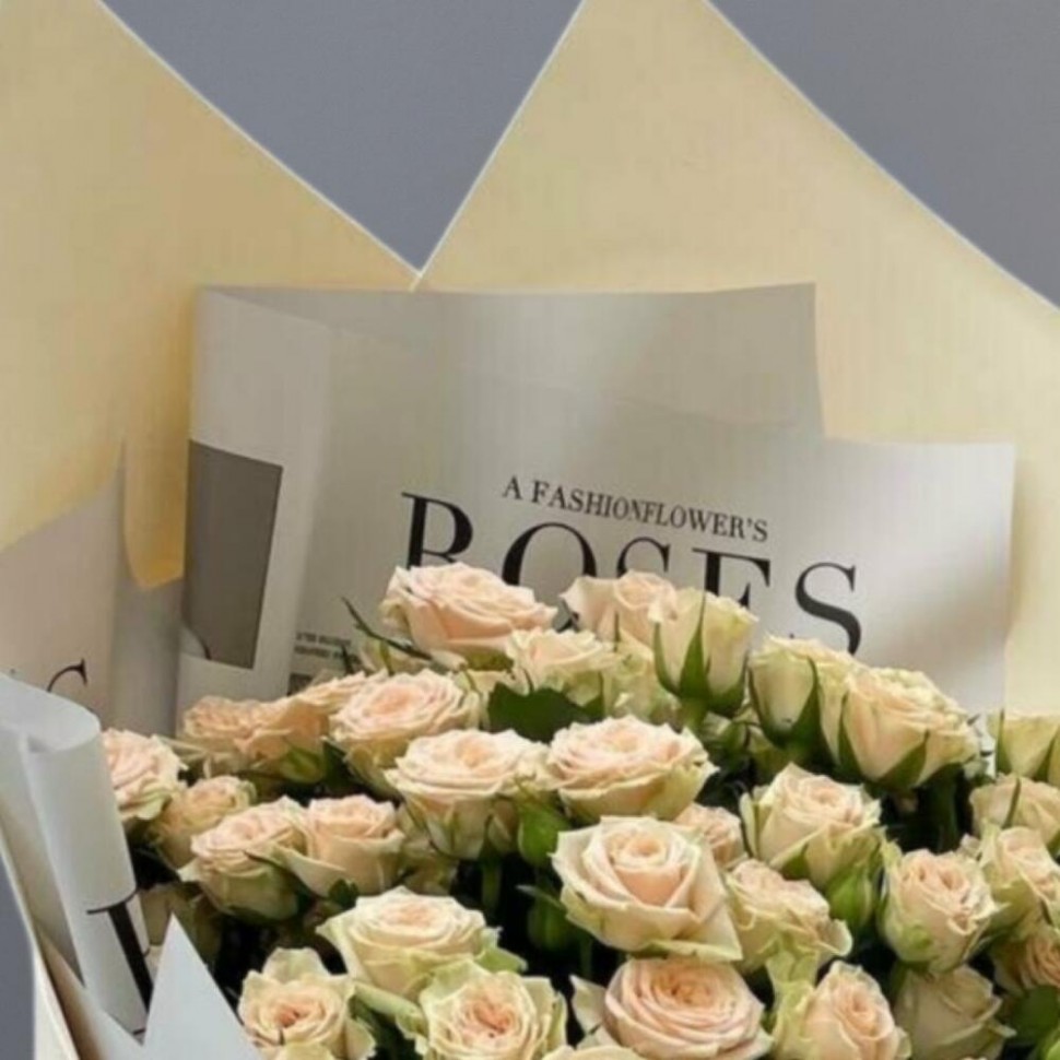 • Букет упакован в песочную упаковку с элементами журнальных листов, что придает ему особую изысканность и элегантность.