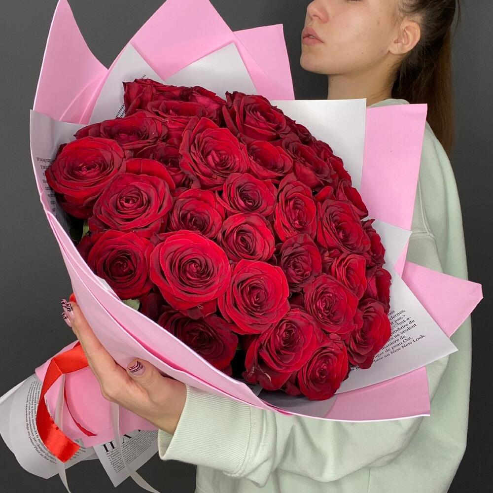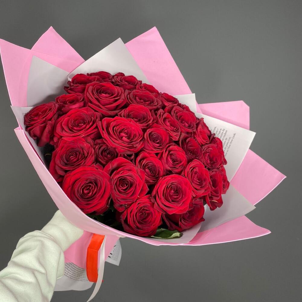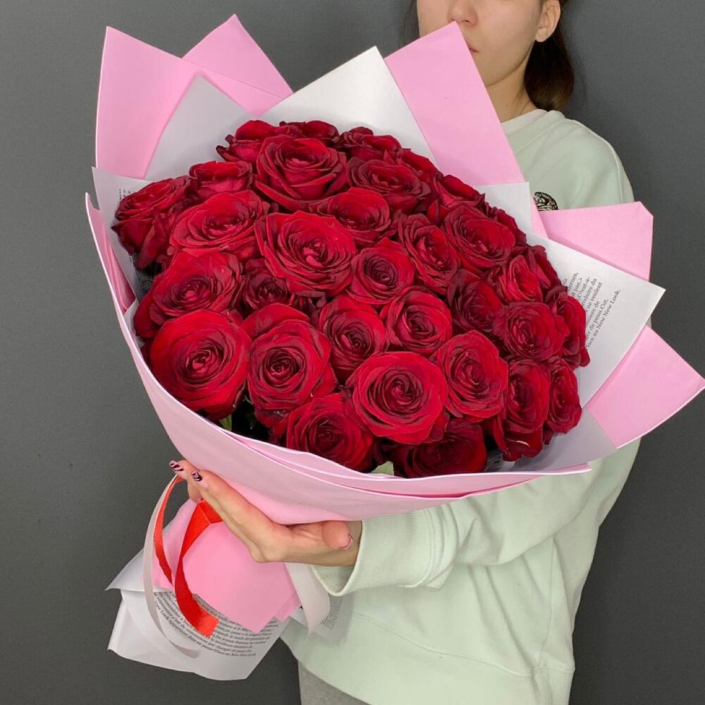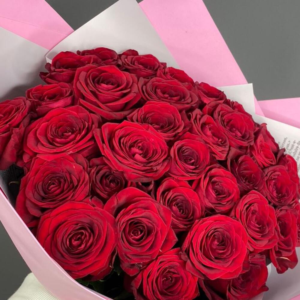 • Букет из 35 красных роз Red Naomi в розовой дизайнерской упаковке — воплощение страсти, любви и элегантности. Каждая роза, с ее яркими и изысканными лепестками, переносит нас в мир глубоких эмоций и неповторимой красоты.