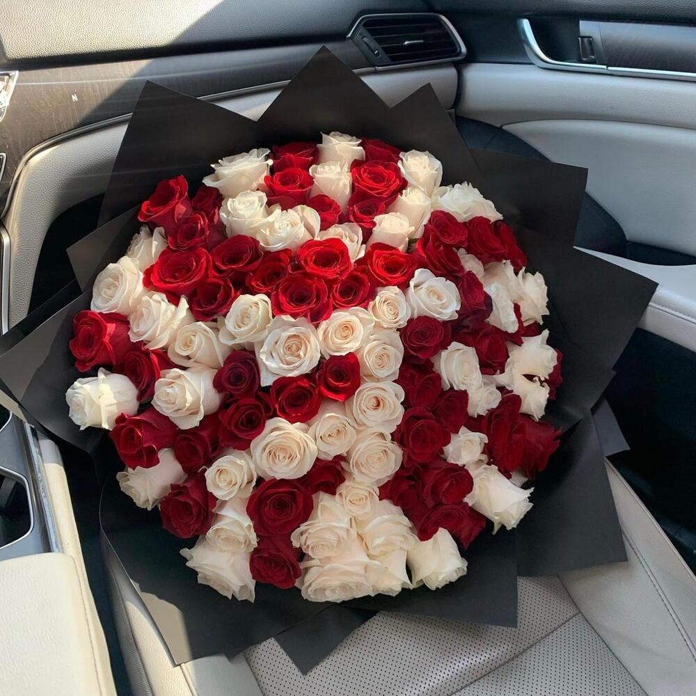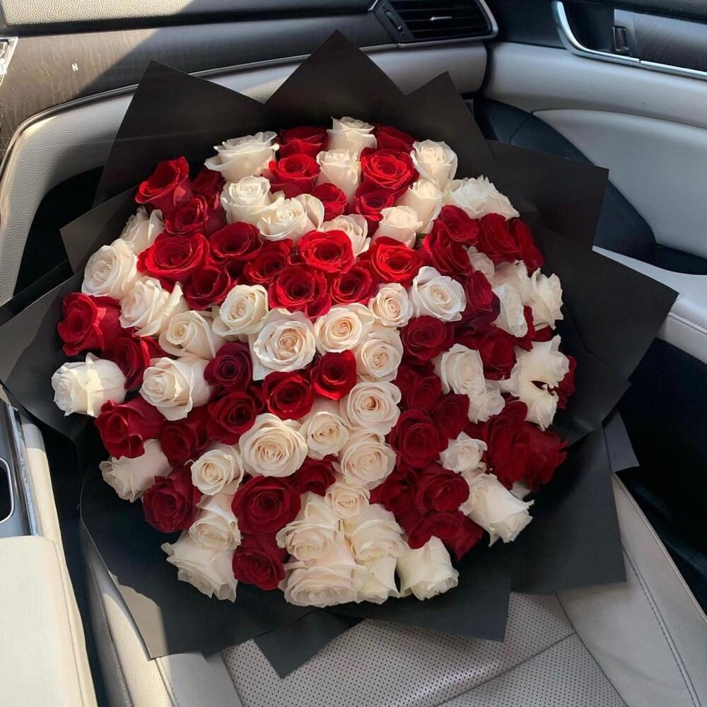 101 Роза Red White: Мраморная Симфония в Атласной Тьме
