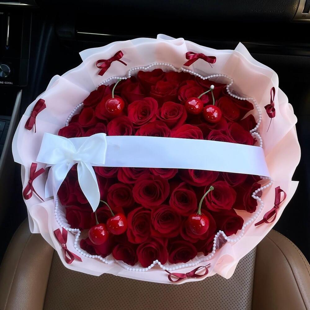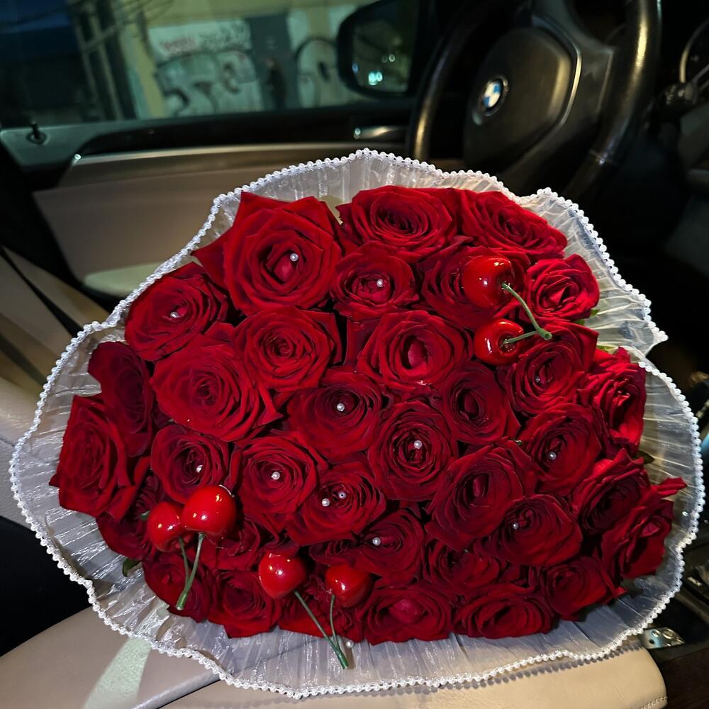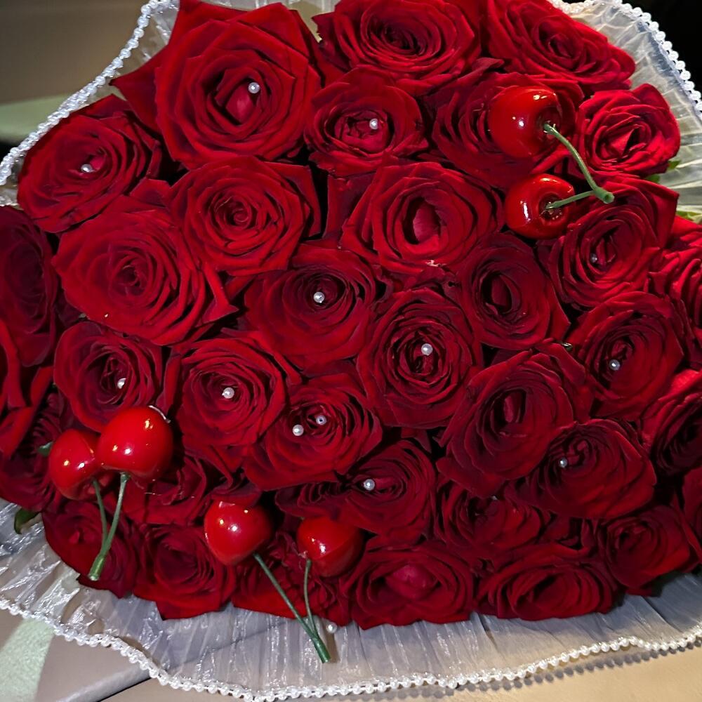 35 Алых Роз с Вишней: Страсть со Вкусом Лета