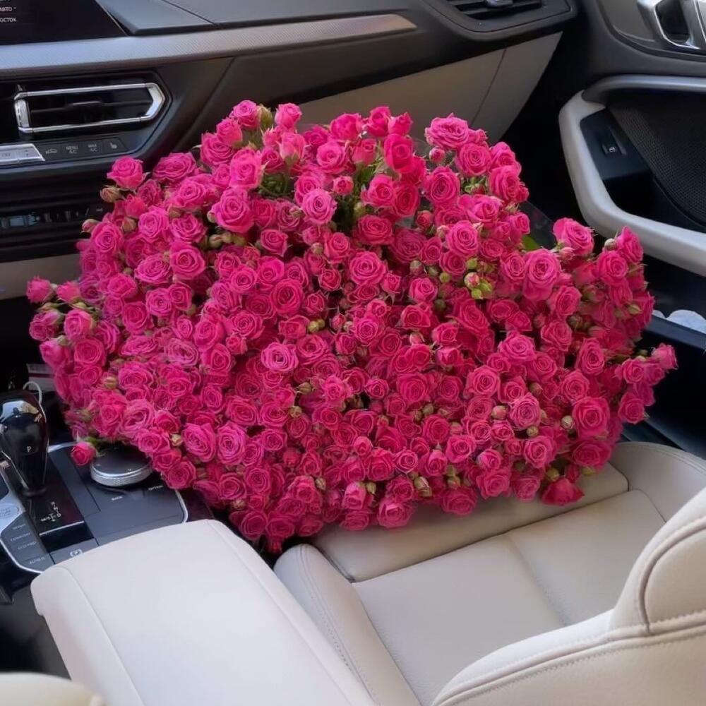 - Пышная композиция — 41 кустовая роза создает объем и роскошный визуальный эффект.