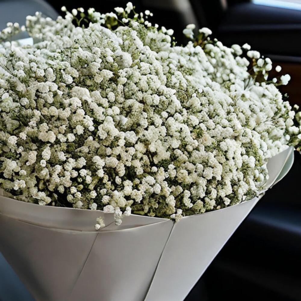 - Подарите легкость и чистоту с изящным букетом из 5 веточек белой гипсофилы. Эти нежные цветы создают эффект воздушного облака благодаря тысячам миниатюрных звездчатых соцветий на тонких разветвленных стеблях. Каждая веточка достигает 40-45 см в длину, образуя пышную кружевную композицию. Гипсофила отличается феноменальной стойкостью — сохраняет свежесть до 14 дней, постепенно раскрывая новые бутоны и наполняя пространство тонким медовым ароматом.