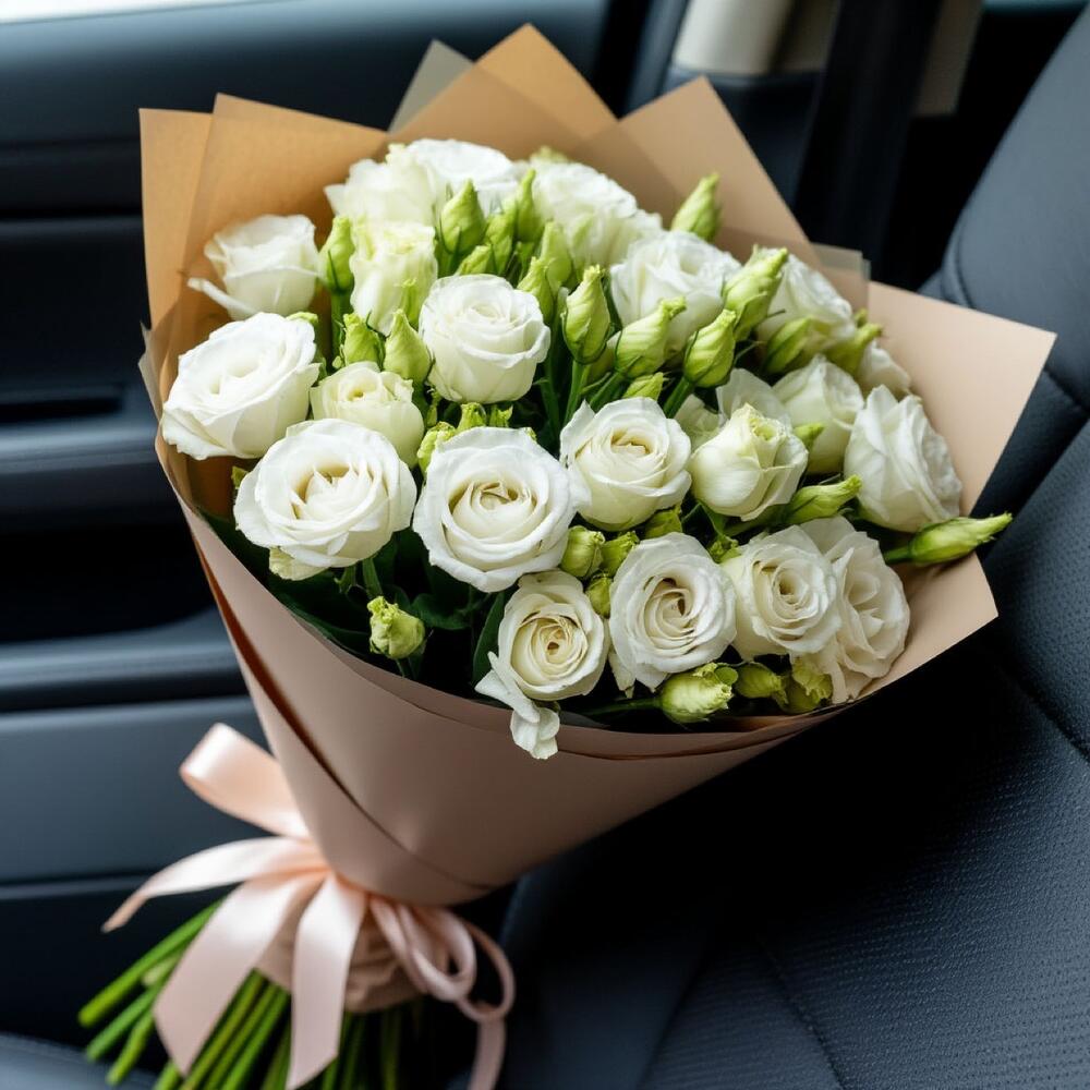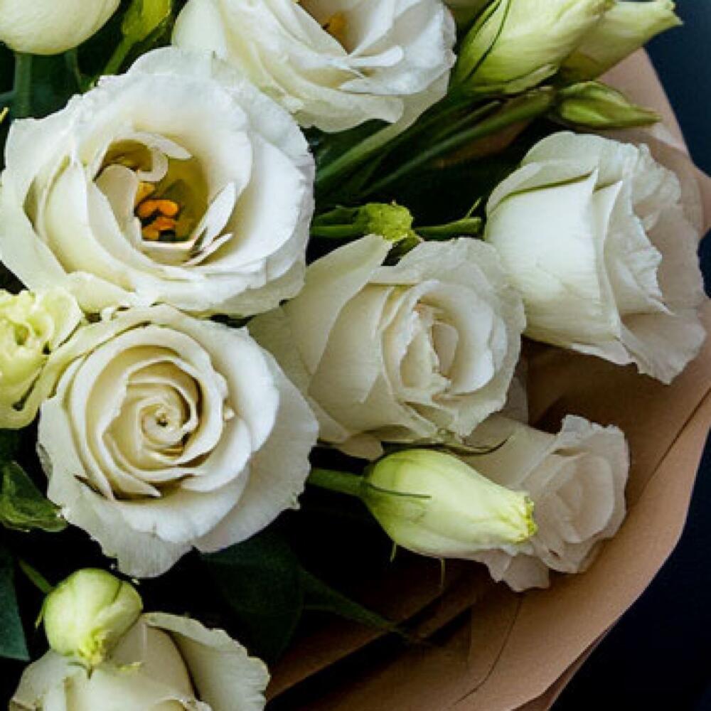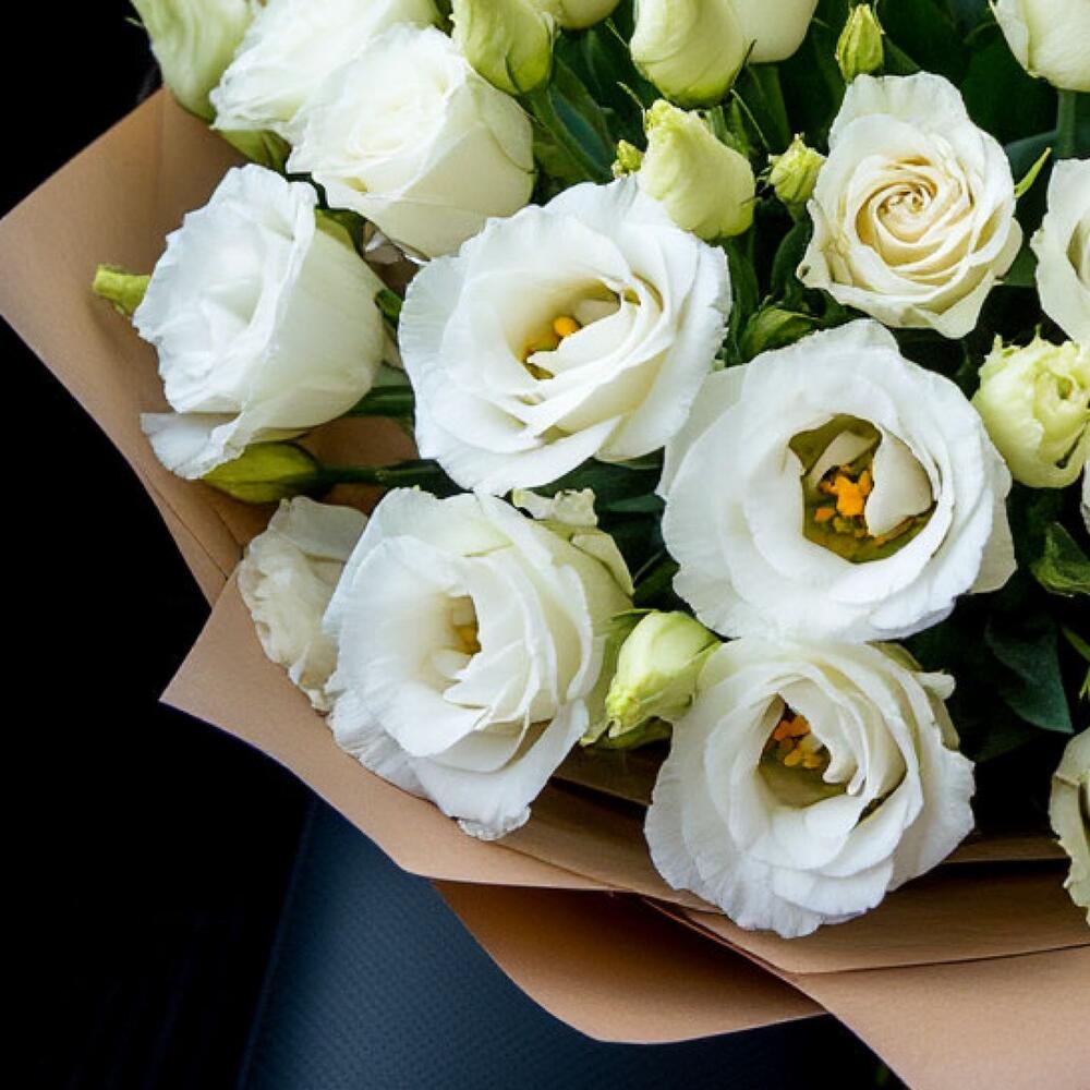 3 ветки белой эустомы с нежными махровыми соцветиями